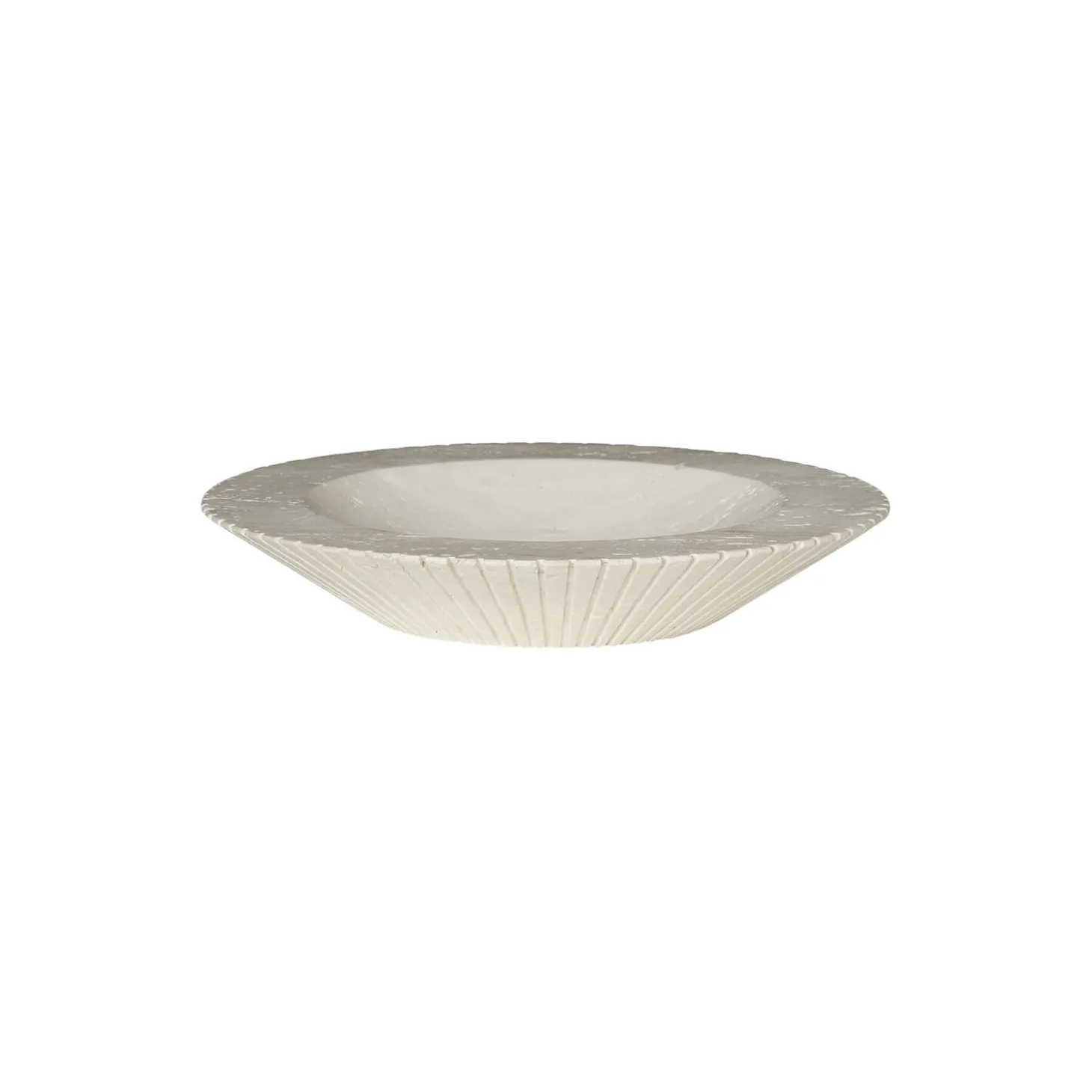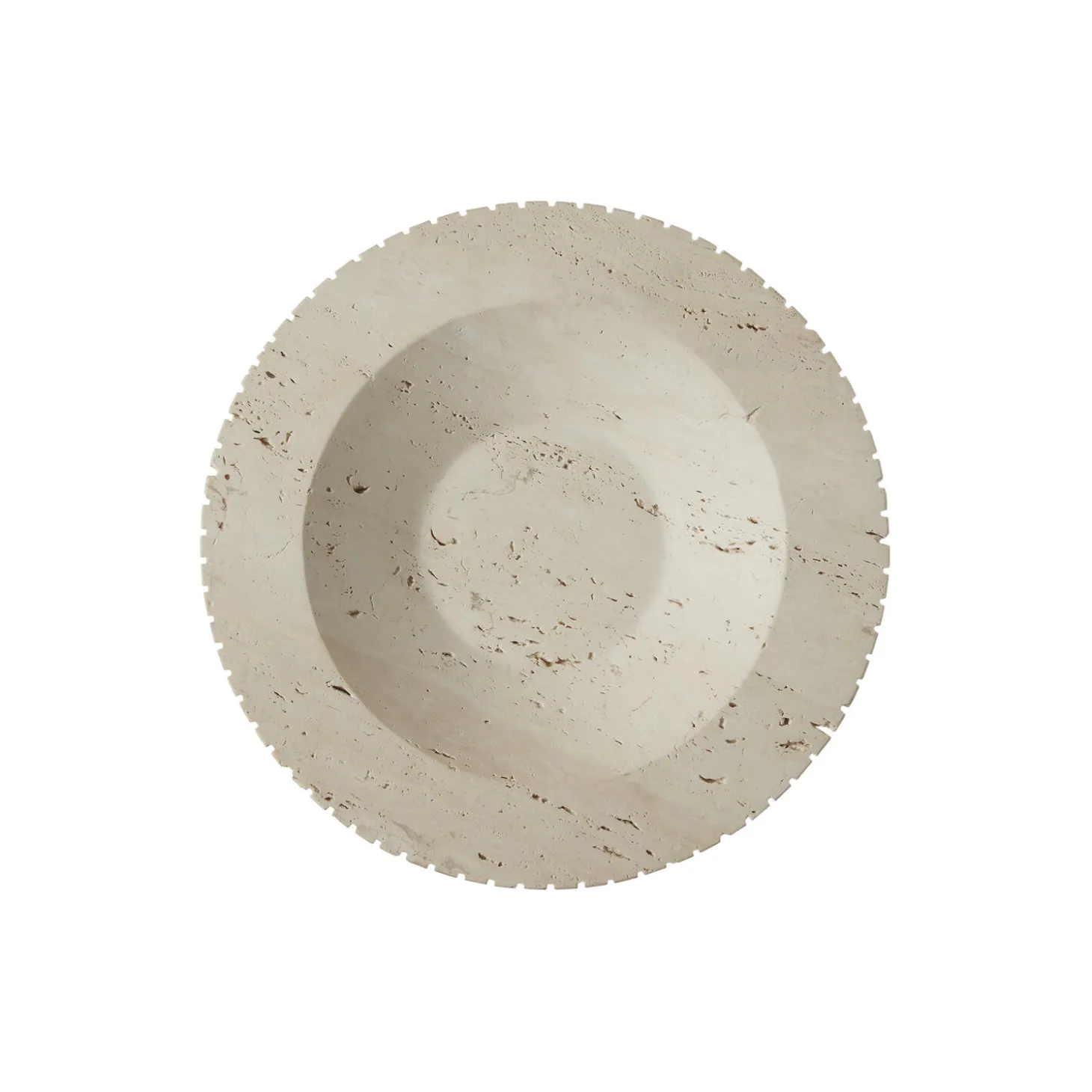 Locus fad i travertin fra Fredericia. Mål: H: 7 x Ø 40 cm. Design: Sofie Østerby.