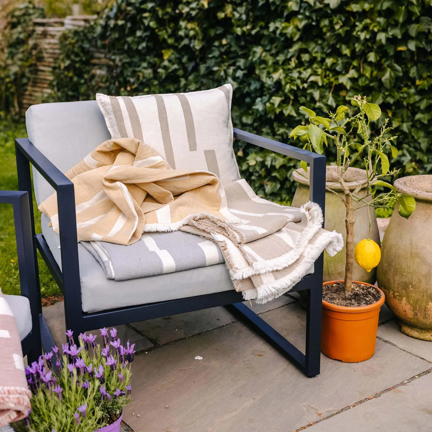 Lyme grass er en afslappet, men stilig kollektion af plaider fremstillet i den mest delikate GOTS certificerede økologiske bomuld.Et grafisk mønster der med sine farvestrålende striber og de friske farver gør Lyme grass til en uundværlig ledsager, når vinter bliver til forår og livet igen leves på altanen eller i haven.Lyme grass har en fin kunstnerisk afslutning med eyelash frynser og findes i 6 smukke farver. En kollektion der kan bruges igen og igen og som tilmed kan vaskes i maskinen.Elvang bomuldskollektioner er produceret i ren GOTS certificeret økologisk bomuld, hvilket gør vores plaider bløde og åndbare. Produkterne produceres bæredygtigt i Portugal på en GOTS certificeret fabrik. GOTS står for ”Global Organic Textile Standard”. Dette er en garanti for, at vores plaider er fremstillet i henhold til de miljømæssige og ansvarlige standarder. Vores bomuldsprodukter indeholder ingen skadelige kemikalier og den økologiske bomuld er allergivenlig.Elvang er fair trade certificeret på højeste niveau hos World Fair Trade Organization (WFTO). Det er en garanti for, at vores produkter er fremstillet under ordentlige vilkår for miljø, mennesker og dyr.Materiale: 100% organisk bomuldVægt: ca. 870 gStr. 130×180 cmKan vaskes v/40 grader