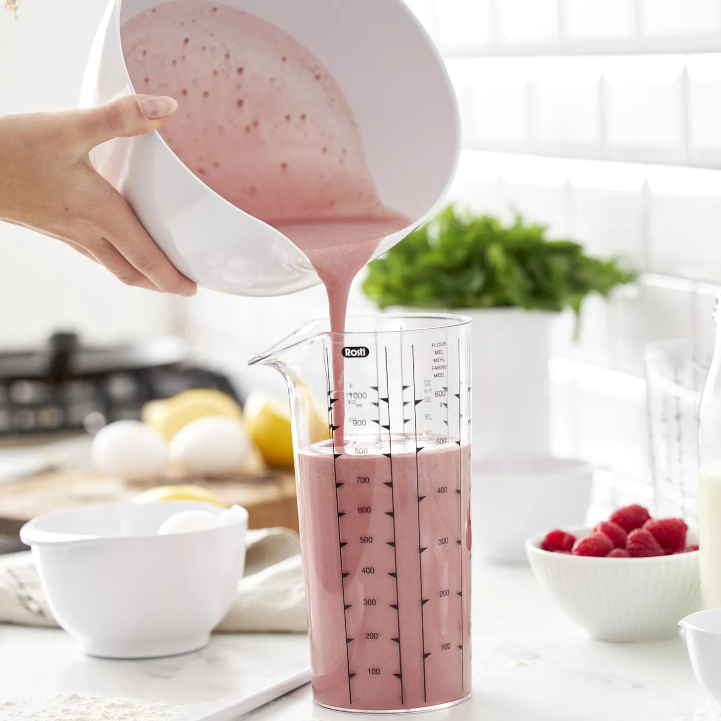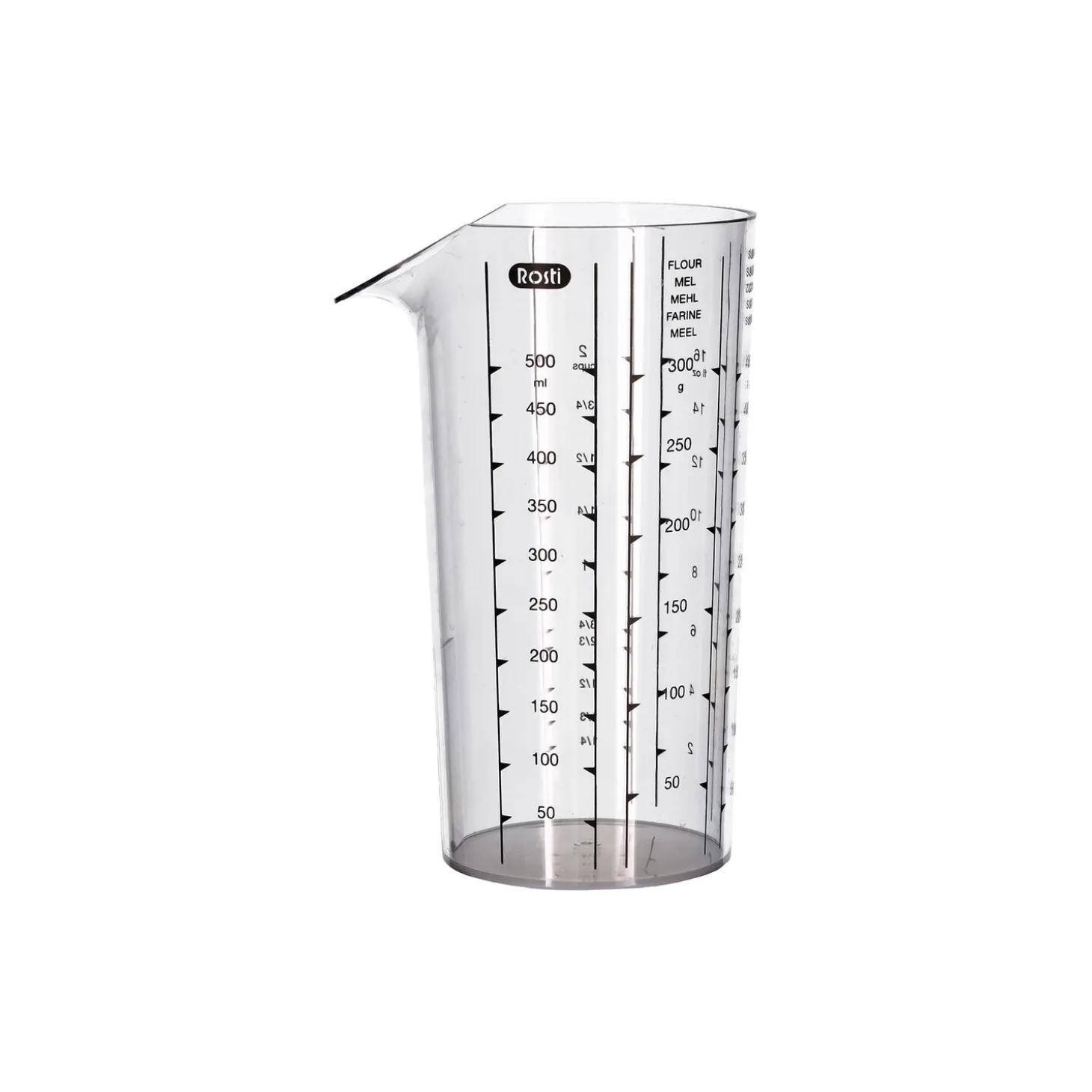 Rosti Målekande med tydelige målemarkeringer, inkl. angivelser for mel og sukker. Pga. pladsbesparelse er kanden uden hank, men den lille diameter gør den alligevel nem at håndtere. SAN er en ridsefast, robust og glansfuld plasttype. Tåler opvaskemaskine op til 80 grader. Tåler ikke mikroovn.