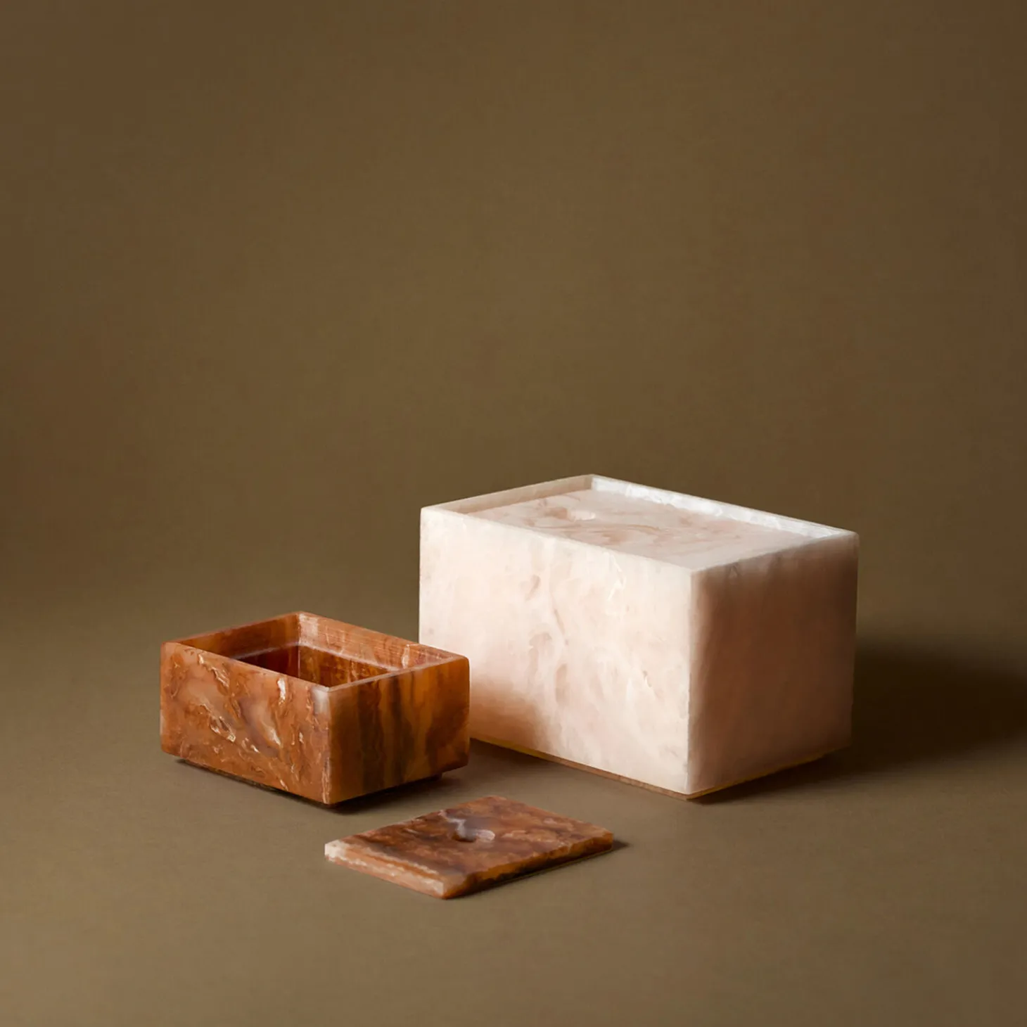 Mist serien er en sofistikeret blanding af legende geometri og funktionelt design. Alle dele i denne finurlige serie giver dig mulighed for at skabe din egen unikke kombination med indbyrdes forbundne former, som kan stables. Mist Æsken er fremstillet af en resinblanding og har flydende, hvirvlende former og æteriske toner, som gør hver enkelt æske helt unik. Perfekt til opbevaring på badeværelset, papirvarer eller som skattekiste, og låget glider ubesværet oven på basen med en lille udskæring, der giver nem adgang. Mist Æsken fås i forskellige størrelser og sælges separat, og den opfylder en række opbevaringsbehov i hjemmet med elegance og stil.