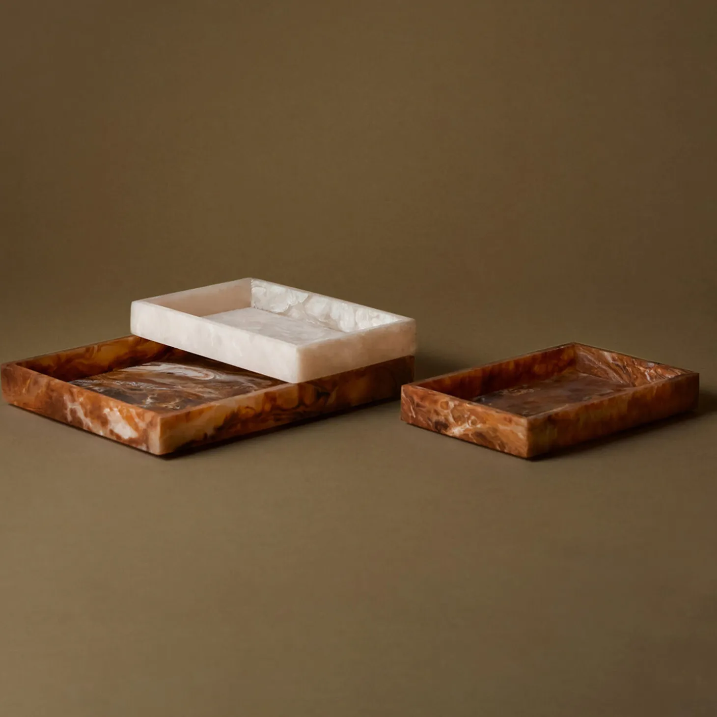 Mist serien er en sofistikeret blanding af legende geometri og funktionelt design. Alle dele i denne finurlige serie giver dig mulighed for at skabe din egen unikke kombination med indbyrdes forbundne former, som kan stables. Mist Bakken er fremstillet af en resinblanding og har flydende, hvirvlende former og æteriske toner, som gør hver enkelt bakke helt unik. Bakken er perfekt til at rumme plejeprodukter, tilbehør og andre skatte, og den passer nemt ind i alle hjemmets rum. Mist Bakken fås i forskellige størrelser, sælges separat og opfylder en række opbevaringsbehov i hjemmet med elegance og stil.