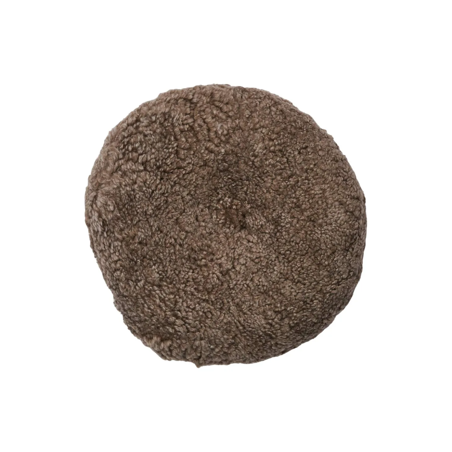 Newzealandsk korthåret & krøllet lammeskindspude fra NATURES Collection. Farve: taupe. Mål: Ø 40 cm.