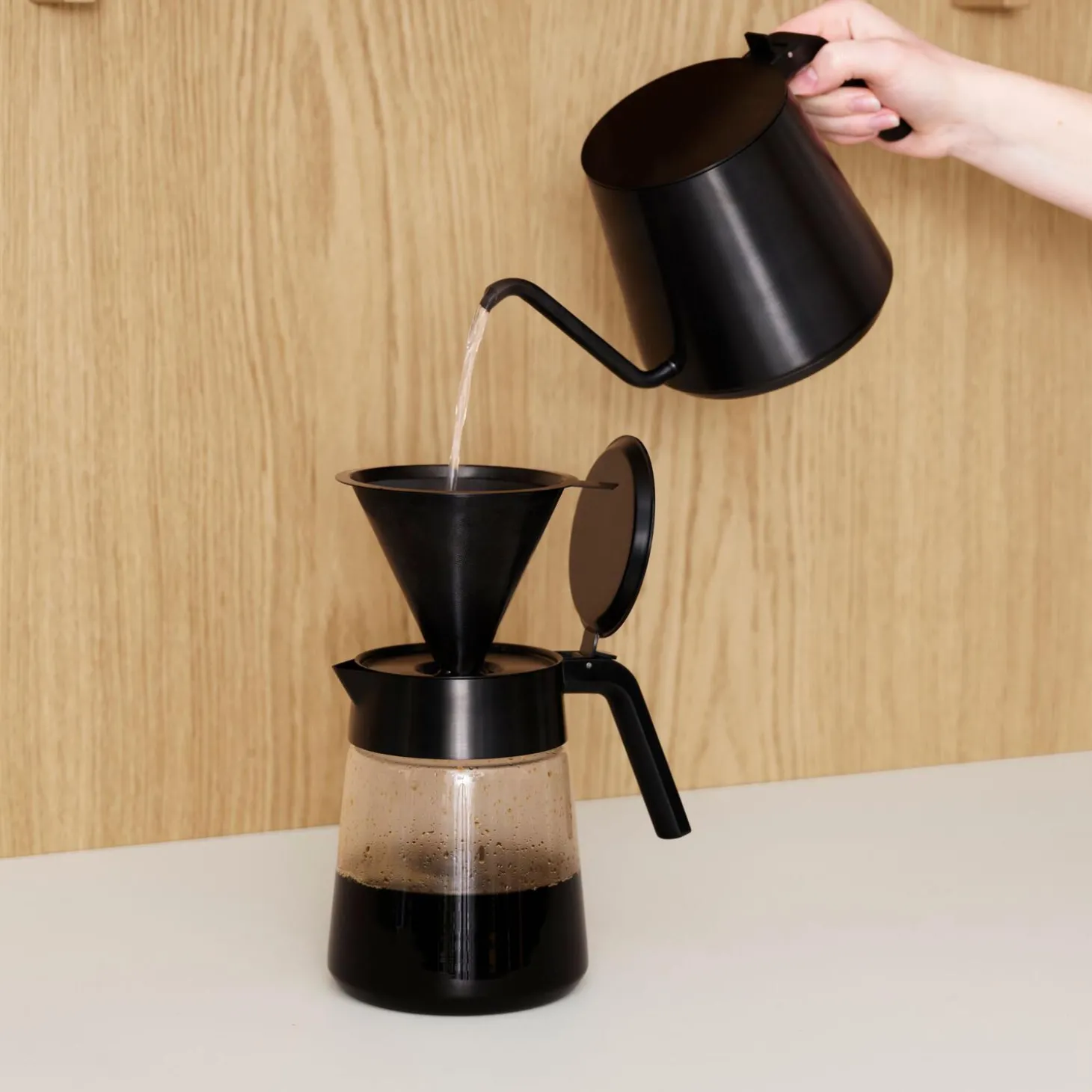 Fintmasket kaffetragt, der er specielt udviklet til pour over kaffebrygning direkte i Nohr-seriens serveringskande. Filteret består af et fintmasket net, der kun lader den aromatiske friskbryggede kaffe slippe igen. Tragten er genanvendelig og bruges uden papirfilter, hvilket gør den skånsom for miljøet. Norh kaffeserien er designet af Søren Refsgaard og består af slow brew kaffetragt, gooseneck kedel, cold brew kaffefilter og en serveringskande i glas. Kanden er designet, så den passer til både pour over og cold brew filtrene. Ønsket har været at skabe en kaffeserie for kaffeentusiaster, der ønsker den ultimative smagsoplevelse. At brygge god kaffe er et håndværk, der kræver tid og nærvær – det understreges af roen og enkeltheden i Nohr-seriens design.