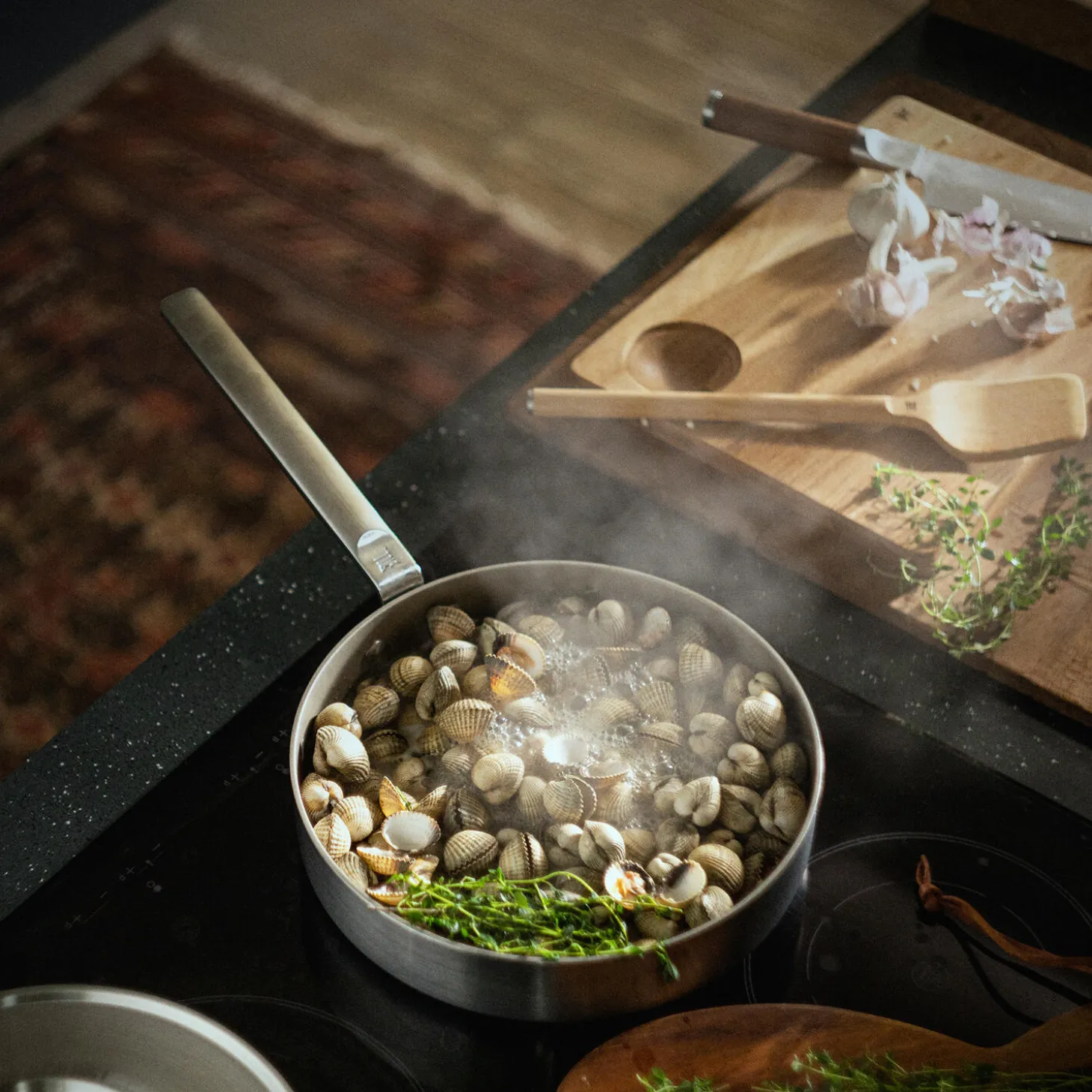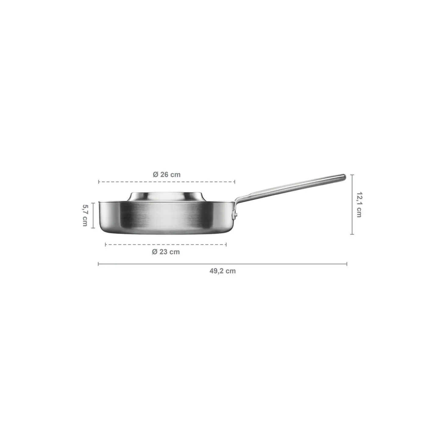 Fiskars Norden kogegrej i stål af højeste kvalitet udspringer af mange års håndværksmæssige traditioner med dybe rødder i den nordiske muld og er et godt eksempel på langtidsholdbart nordisk design, inspireret af naturen. Norden sauterpande i stål og med låg (26 cm) har en tyk bund og en 3-lagskonstruktion fra kant til kant, der sikrer en jævn varmefordeling. Sauterpandens høje sider og medfølgende låg gør den ideel til tilberedning af retter med sauce. Aluminiumskernen mellem de ydre og indre lag af rustfrit stål sikrer jævn og effektiv varmefordeling på alle kogezoner. En non-stick Ceratec™-belægning med Thermium™-mineralbehandling giver sauterpanden enestående non-stick egenskaber, selv ved høje temperaturer, uden at gå på kompromis med det smukke ståldesign. Det gør kogegrej fra Norden serien perfekt til at tilberede selv de mest sarte ingredienser og frembringe de skønneste smage i dine retter. Det markante håndtag og låg i rustfrit stål minimerer overførslen af varme. Maks. stege- og ovntemperatur helt op til 270°C. Fremstillet i Finland.
