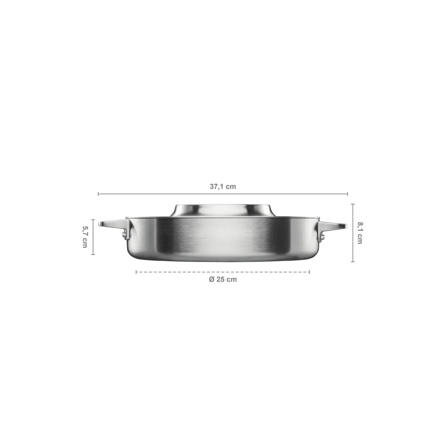 Fiskars Norden kogegrej i stål af højeste kvalitet udspringer af mange års håndværksmæssige traditioner med dybe rødder i den nordiske muld og er et godt eksempel på langtidsholdbart nordisk design, inspireret af naturen. Fiskars Norden stegefad i stål og med låg (28 cm) har en tyk bund og en 3-lagskonstruktion fra kant til kant, der sikrer en jævn varmefordeling og gør stegefadet særdeles velegnet til langtidstilberedning af fx gratin og risotto ved lave temperaturer samt til braisering af kød. Aluminiumskernen mellem de ydre og indre lag af rustfrit stål sikrer jævn og effektiv varmefordeling på alle kogezoner. En non-stick Ceratec™-belægning med Thermium™-mineralbehandling giver stegefadet enestående non-stick egenskaber, selv ved høje temperaturer, uden at gå på kompromis med det smukke ståldesign. Det gør kogegrej fra Norden serien perfekt til at tilberede selv de mest sarte ingredienser og frembringe de skønneste smage i dine retter. Det markante håndtag og låg i rustfrit stål minimerer overførslen af varme. Maks. stege- og ovntemperatur helt op til 270°C. Fremstillet i Finland.