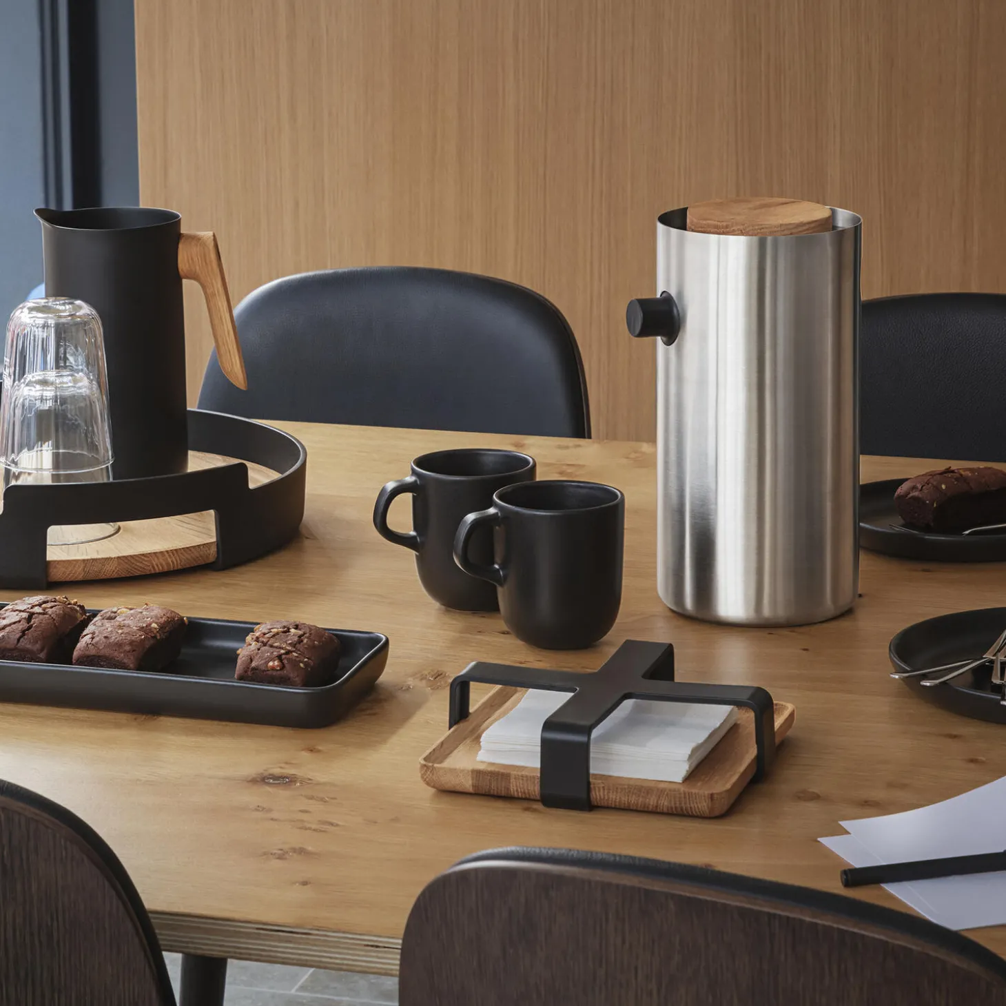 Hele 1,8 l rummer pumpetermokanden i kompakt, minimalistisk design. Kanden fra Nordic kitchen er velegnet til fest og sammenkomster og er med sit integrerede håndtag nem at tage med på farten, til møde eller på picnic. Tryk blot på egetræslåget og kaffen er serveret, her skal hverken skrues eller drejes. Termokandens veldesignede pumpesystem garanterer mindst 30.000 pump, og termostålindsatsen gør termokanden ekstra robust og holder kaffen varm. Egetræslåget vedligeholdes ved regelmæssig oliering