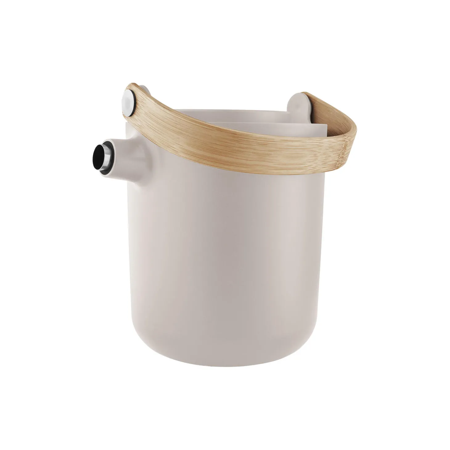 Te-termokande med integreret tefilter i Nordic kitchen-seriens enkle, nordiske udtryk. De rene linjer og en æstetisk kombination af kunststof, rustfrit stål og bambus er det perfekte match til det moderne hjem. Brug tekanden til både brygning og servering. Designet er inspireret af en tekande og gør det nemt at kende forskel på te og kaffe. Det løse tefilter løftes nemt op ved endt trækketid. Bambushåndtaget kan stå ret op eller vippes ned, så termokanden ikke tager unødigt meget plads i køkkenskabet. Termokanden er 100% drypfri, så du undgår genstridige teskjolder på bordet, og termoindsatsen i stål holder teen varm længe. Håndtaget vedligeholdes ved regelmæssig oliering.