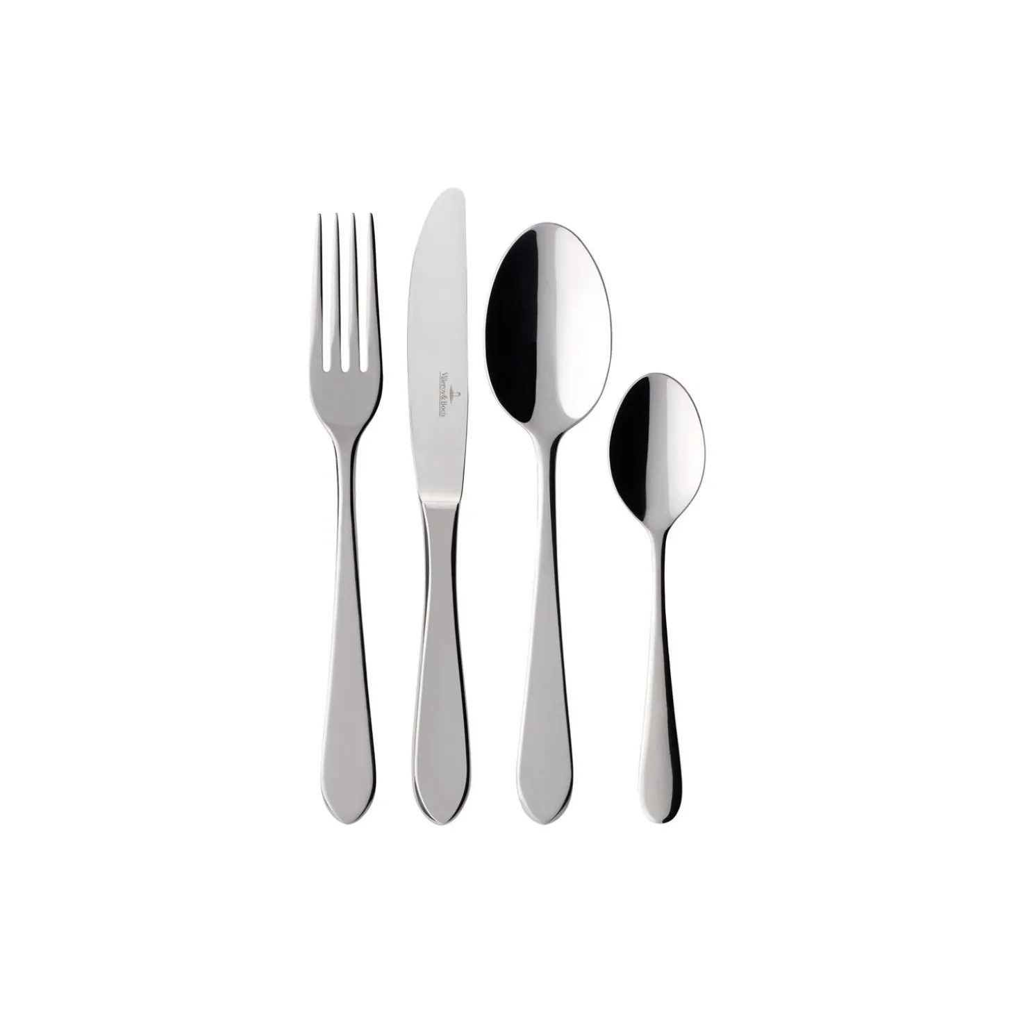 The dishwasher-safe stainless steel cutlery in the Oscar collection boasts a gently rounded design and subtle embossing on the knife handle. Comes in an elegant cardboard box with an image of the product. This table cutlery set for up to six people has everything you need, for everyday use and special occasions. It adds a stylish touch to every meal, regardless of whether you use just some or all of the pieces. Add the finishing touch to your crockery, whatever the occasion.