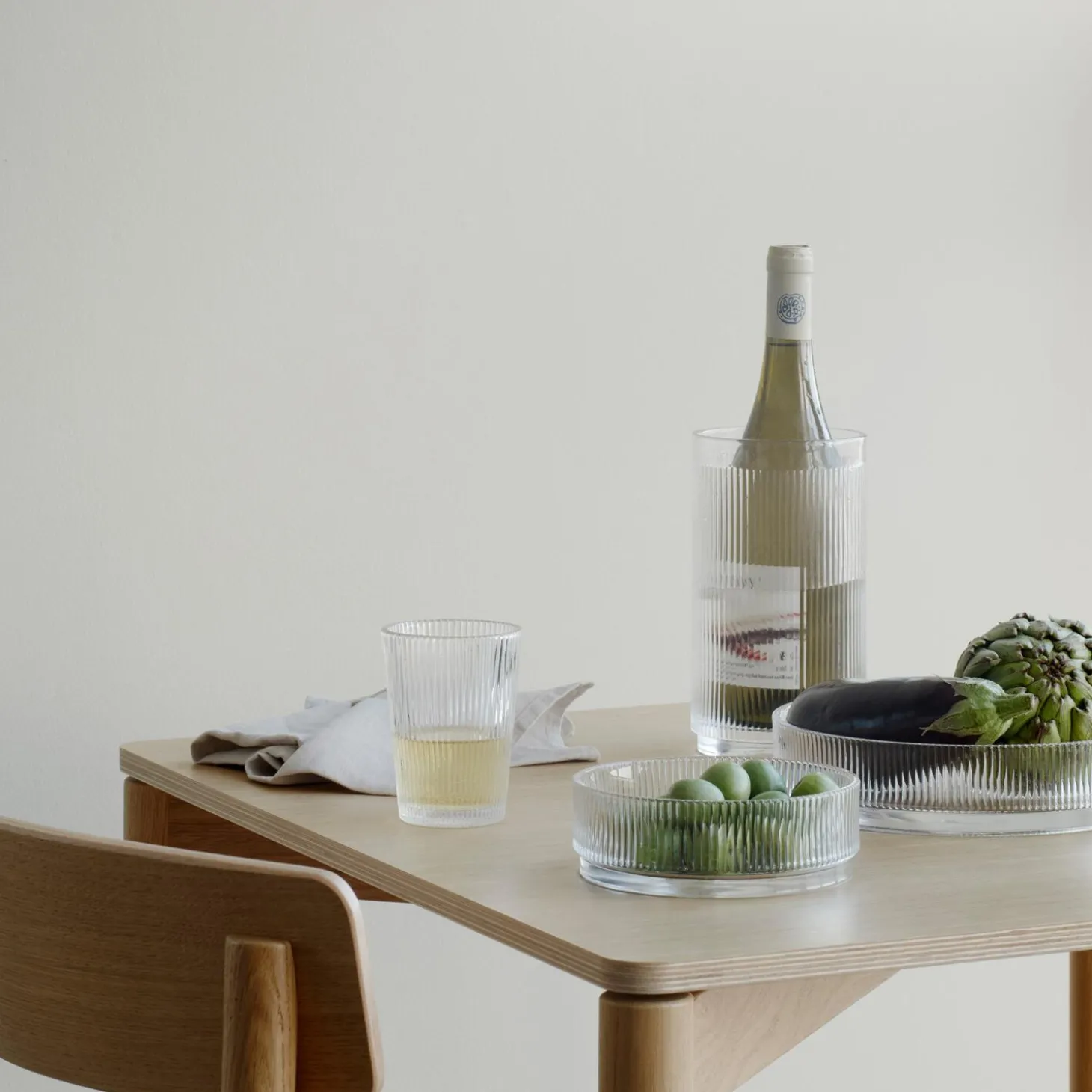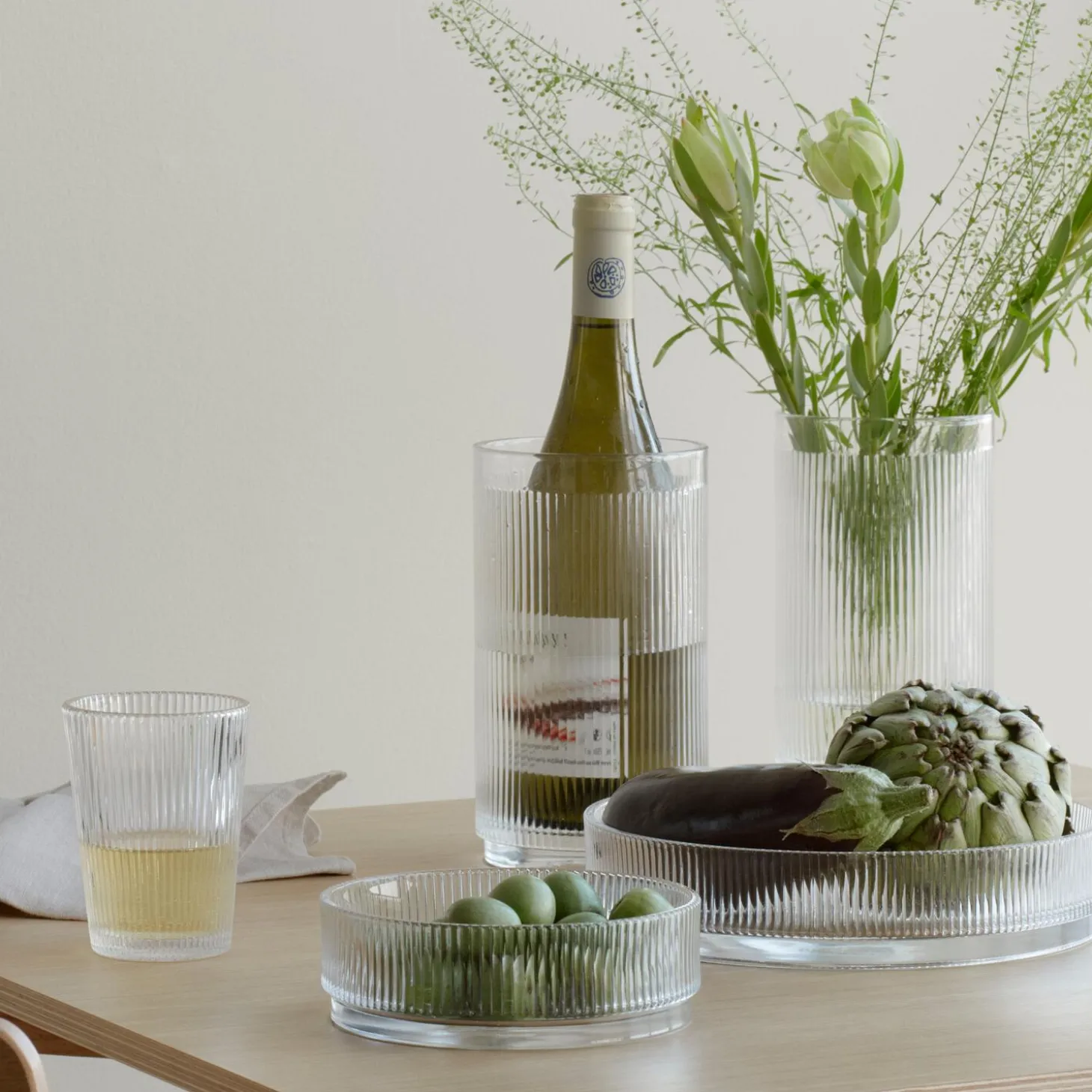 Et køligt glas vin på en varm dag. En salat serveret i en smuk glasskål. Det er de små ting, der kan gøre hverdagen til en fest. Kom Pilastro vinkøleren af glas i fryseren før brug, eller læg isterninger i vinkølerens bund, så kan vinen holde sig kold til de lune aftener på terrassen eller altanen. Mangler du en ekstra vase, så kan vinkøleren også bruges til afskårne blomster. Pilastro-serien, designet af Francis Cayouette, er inspireret af 1920’ernes elegante og funktionelle Art déco-stil, der dominerede i arkitektur og design.