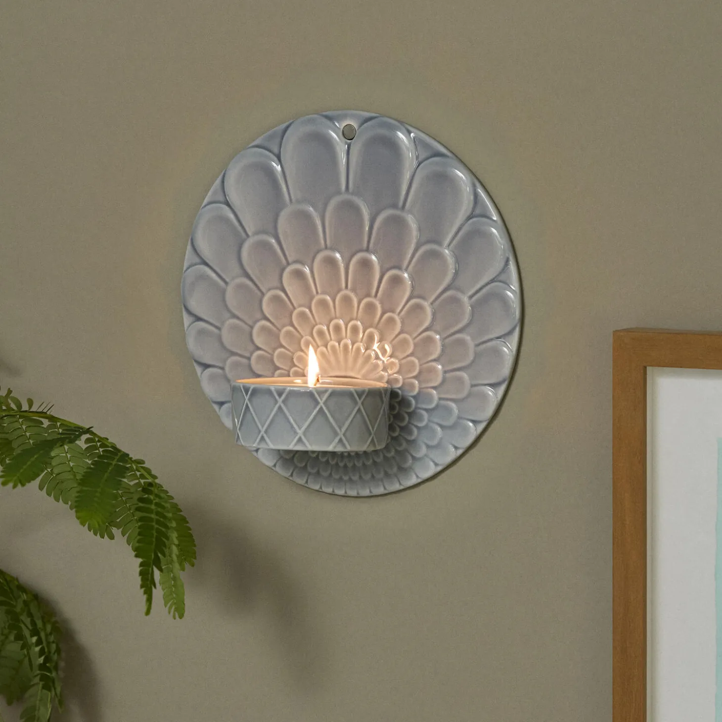 Pipanella væghængt fyrfadslysestage kaster smukke skygger på væggen, når mørket falder på. Vægstagen bruger et stort fyrfadslys.