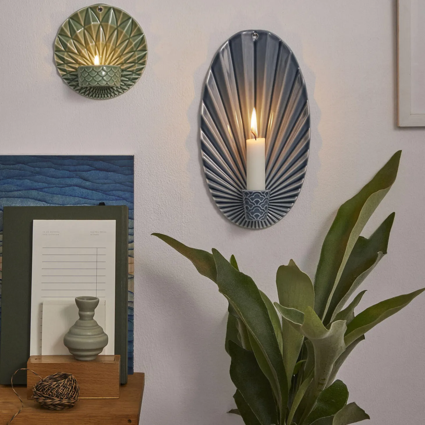 Væghængt lysestage som kaster smukke skygger på væggen, når mørket falder på.