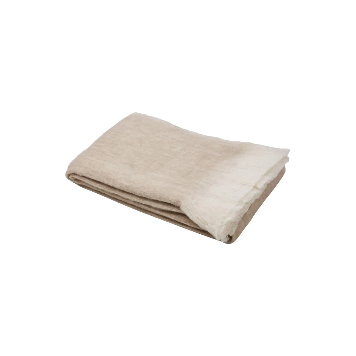 Plaid i 65% akryl, 25% polyester og 10% mohairuld fra NATURES Collection. Farve: light beige. Mål: 130×170 cm.