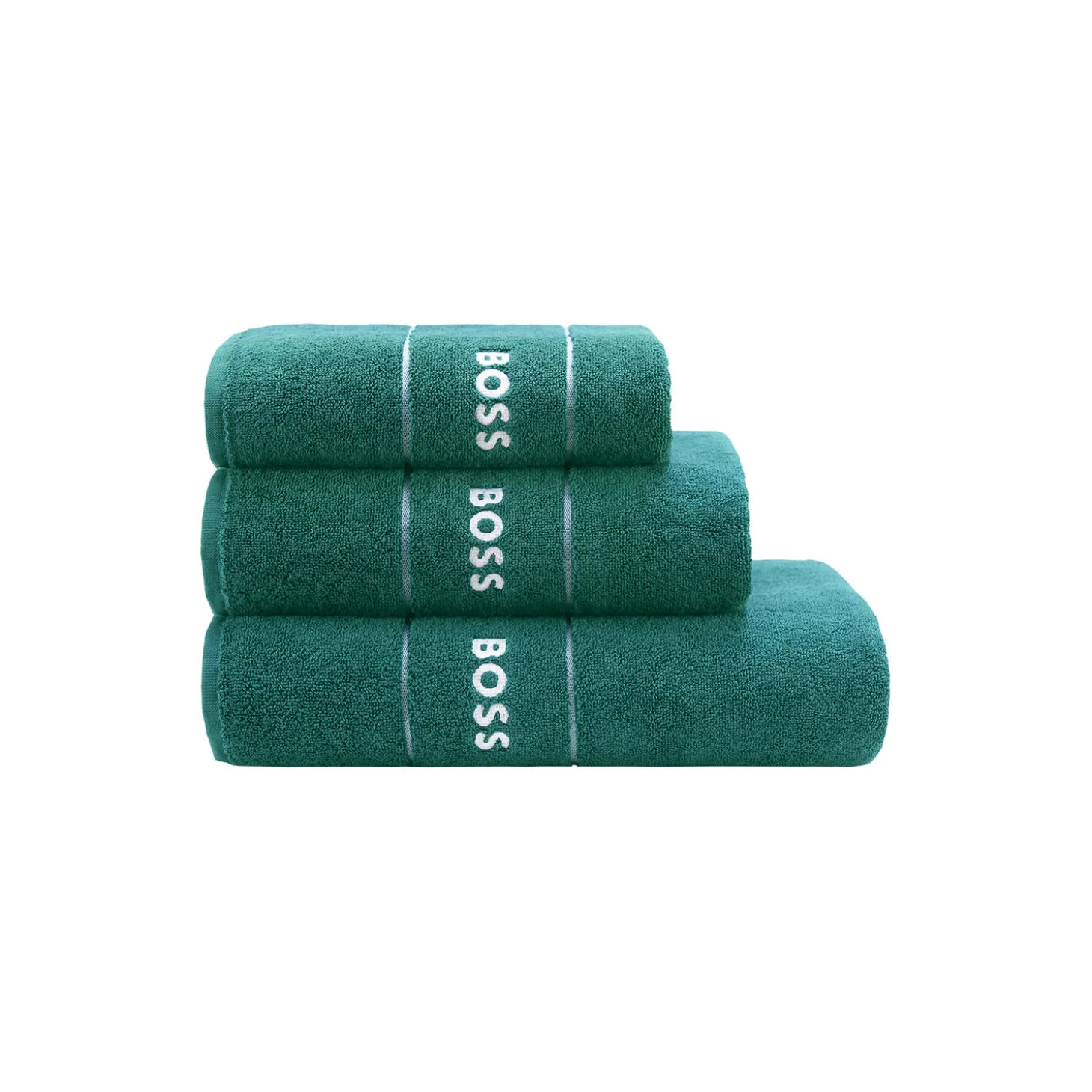 Plain håndklæde i 100% bomuld fra Hugo Boss Home. Farve: everglade.