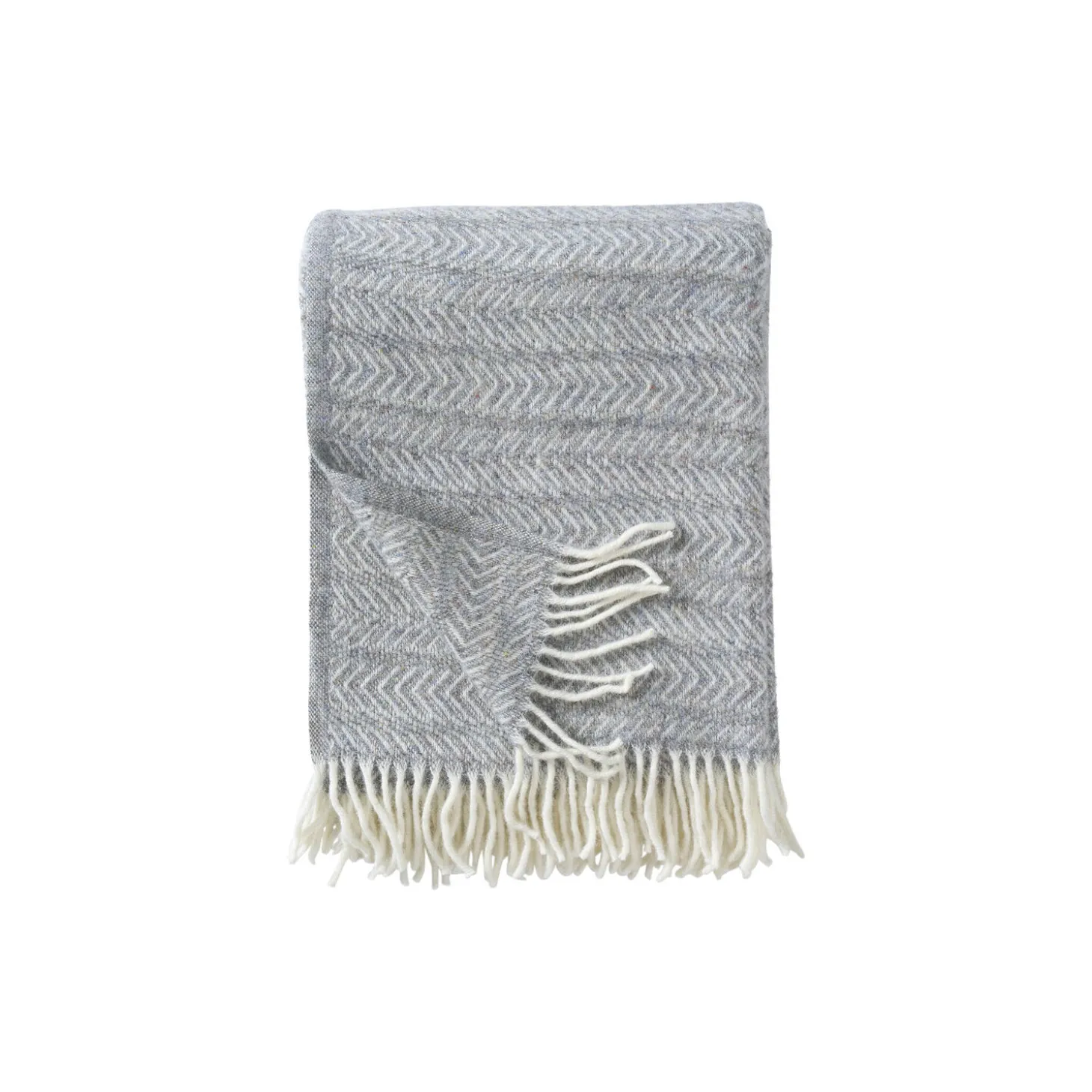Point plaid i 75% lammeuld og 25% genanvendt uld fra Klippan Yllefabrik. Farve: grey. Mål: 130×200 cm.