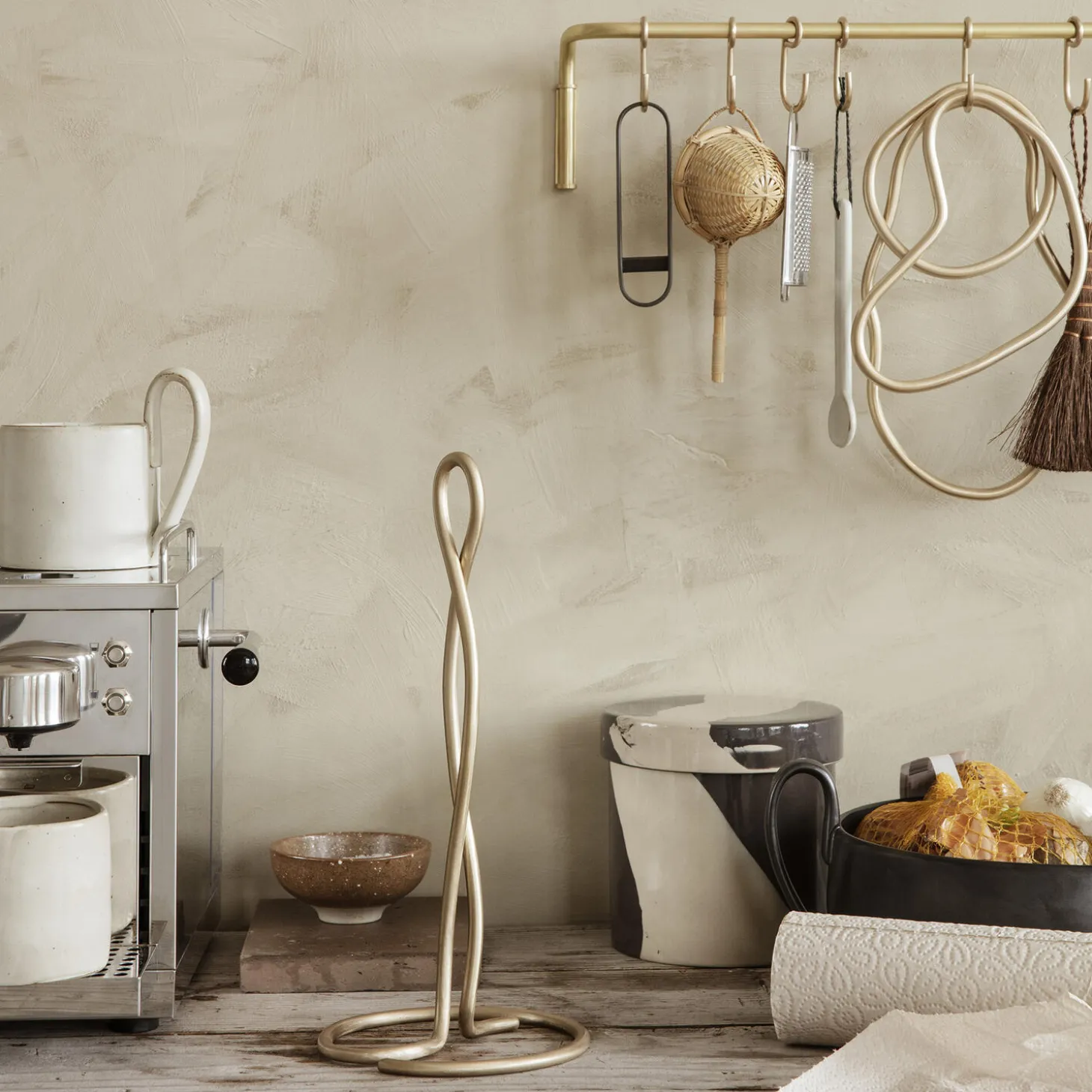 Som de spejler de organiske uregelmæssigheder, når vand er i bevægelse, kommer Pond-bordskånerne som et sæt af tre messingringe, der beskytter spisebordet mod varme pander og gryder. Sammen udformer de en æstetisk komposition på bordet, og du kan vælge at hænge dem op på en krog som dekoration, når du ikke bruger dem.
