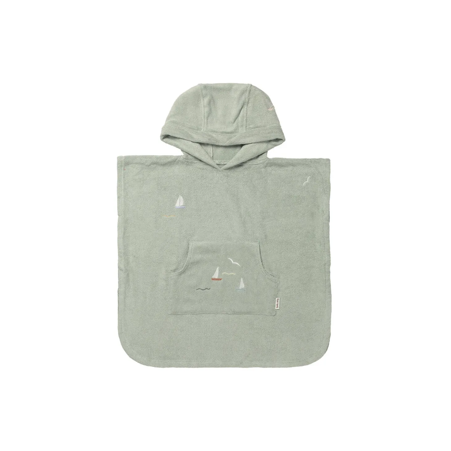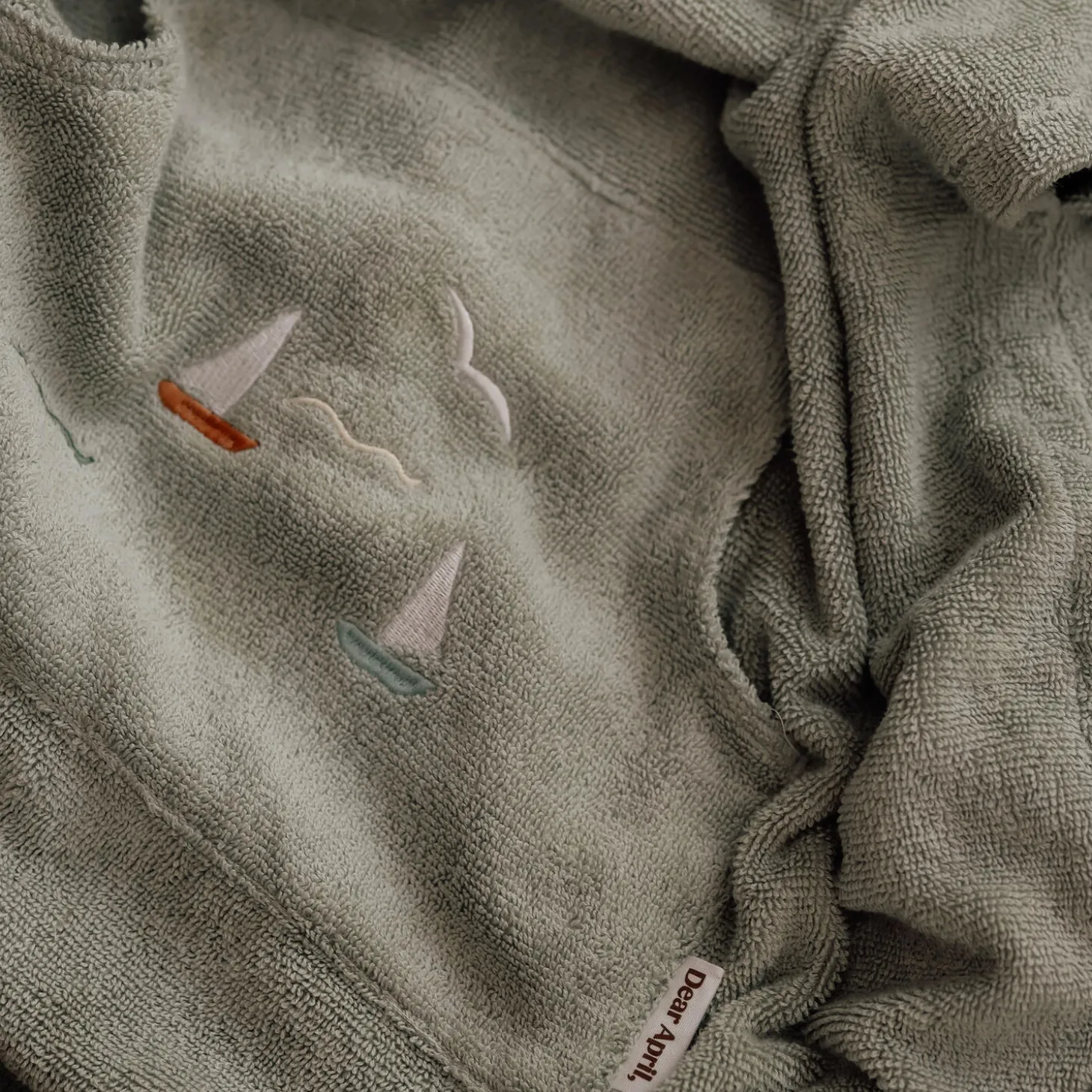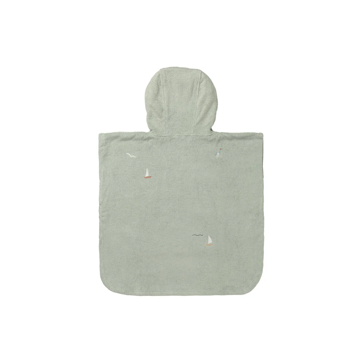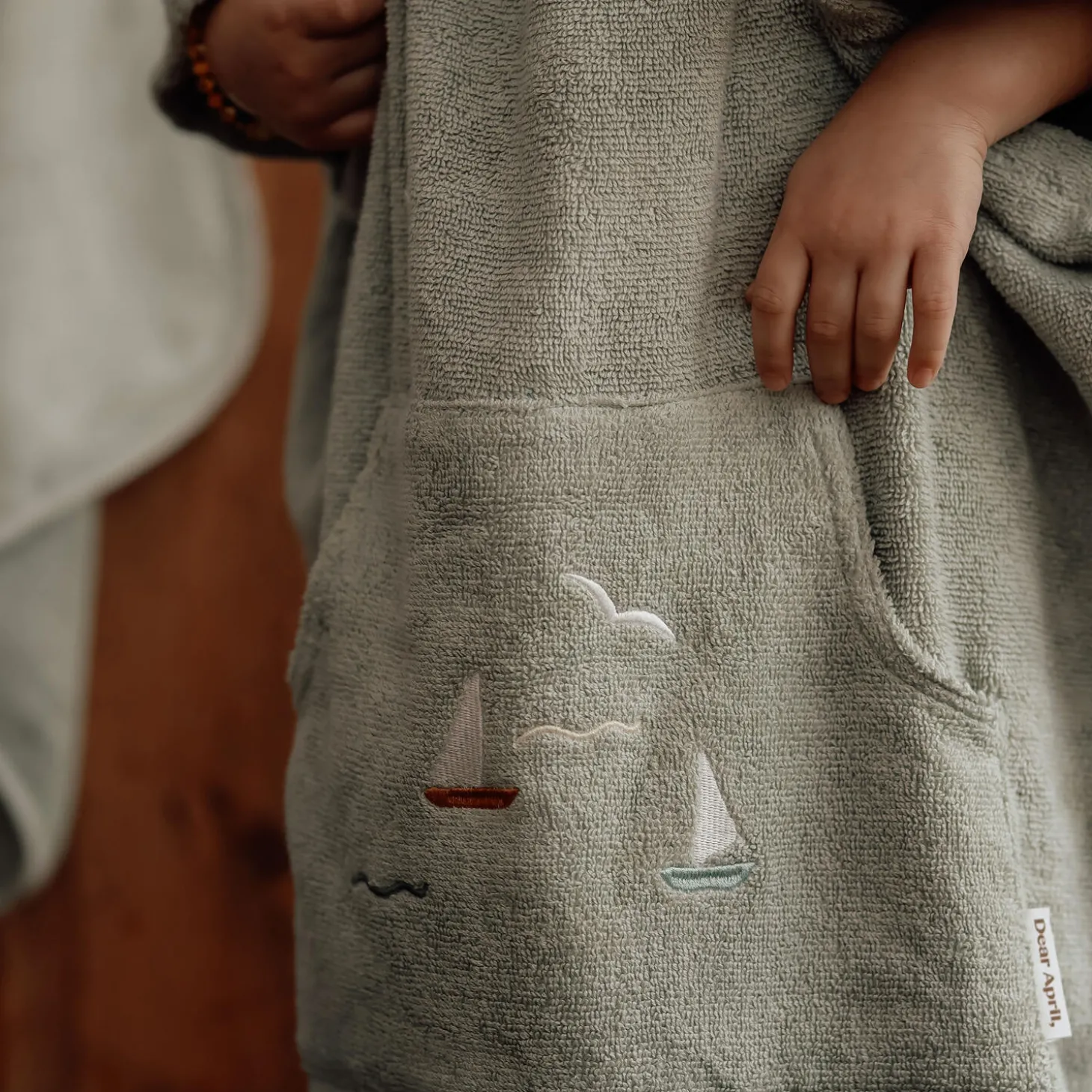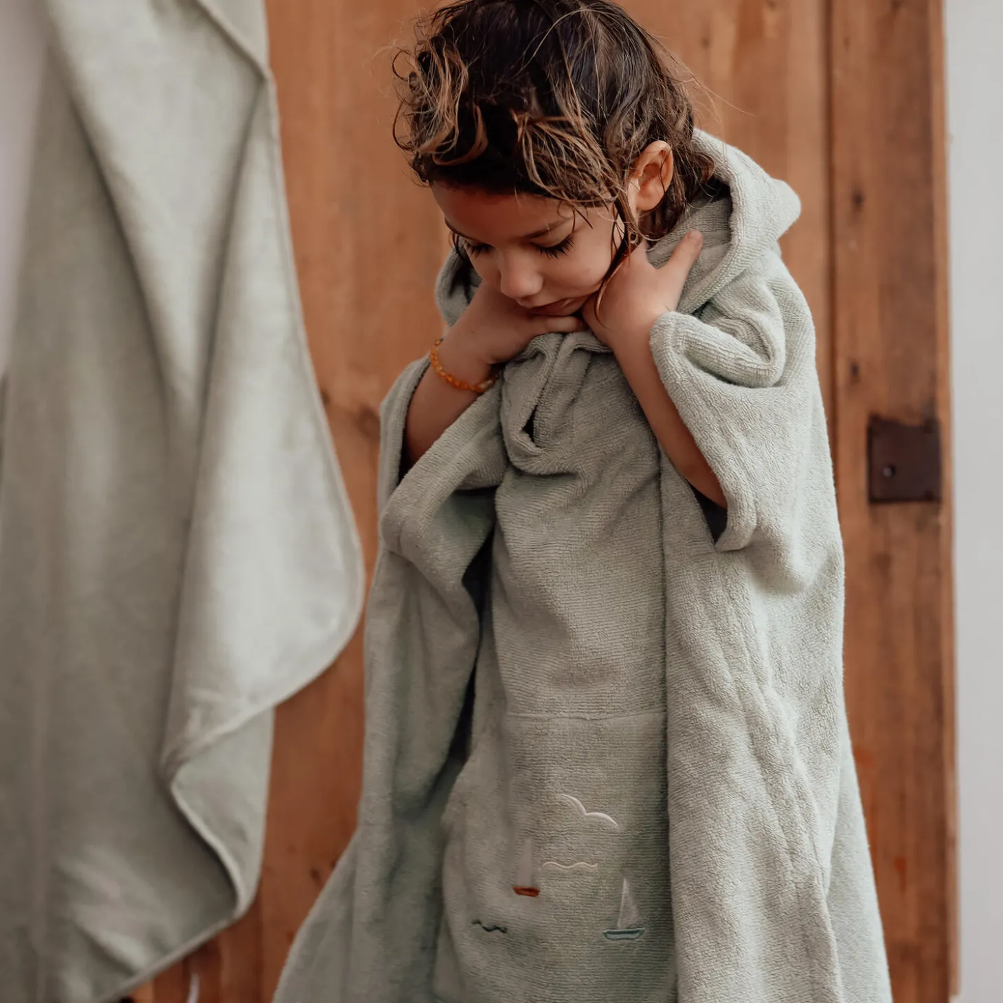 Hyggelig badeponcho i tyk og blød frotté med en fast hætte og kængurulomme. Den er nem at tage over hovedet efter bad eller på stranden. Ponchoen har små, fine broderier, der er inspireret af natur og udeliv.Ponchoen er ONE SIZE. Anbefalet alder ca. 2-6 år.