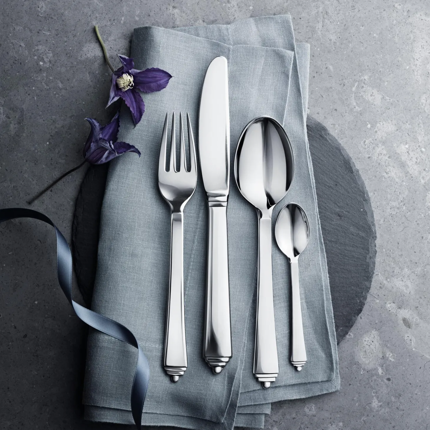 Det ikoniske Pyramide bestik er en designklassiker fra 1926, som fuldender borddækningen med tidløs elegance. Bestikket bringer et strejf af art deco-stil til bordet med sit pyramideformede mønster, som afrunder skaftet på sofistikeret vis. Sættet består af fire dele, som du kan kombinere med resten af den elegante kollektion.