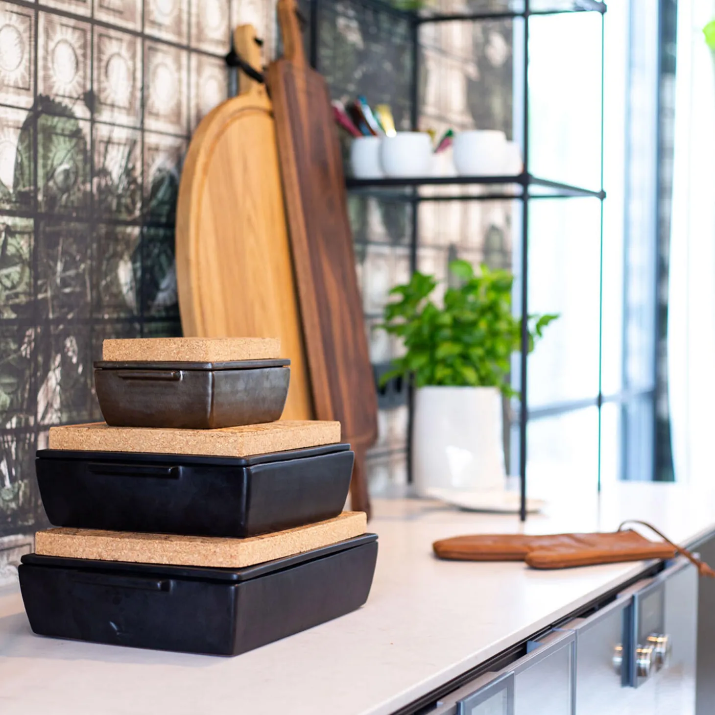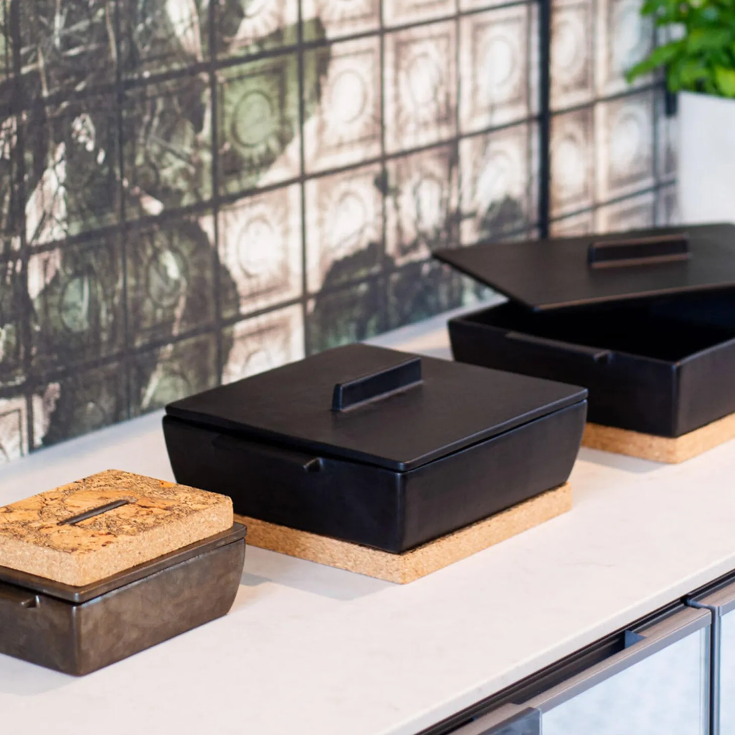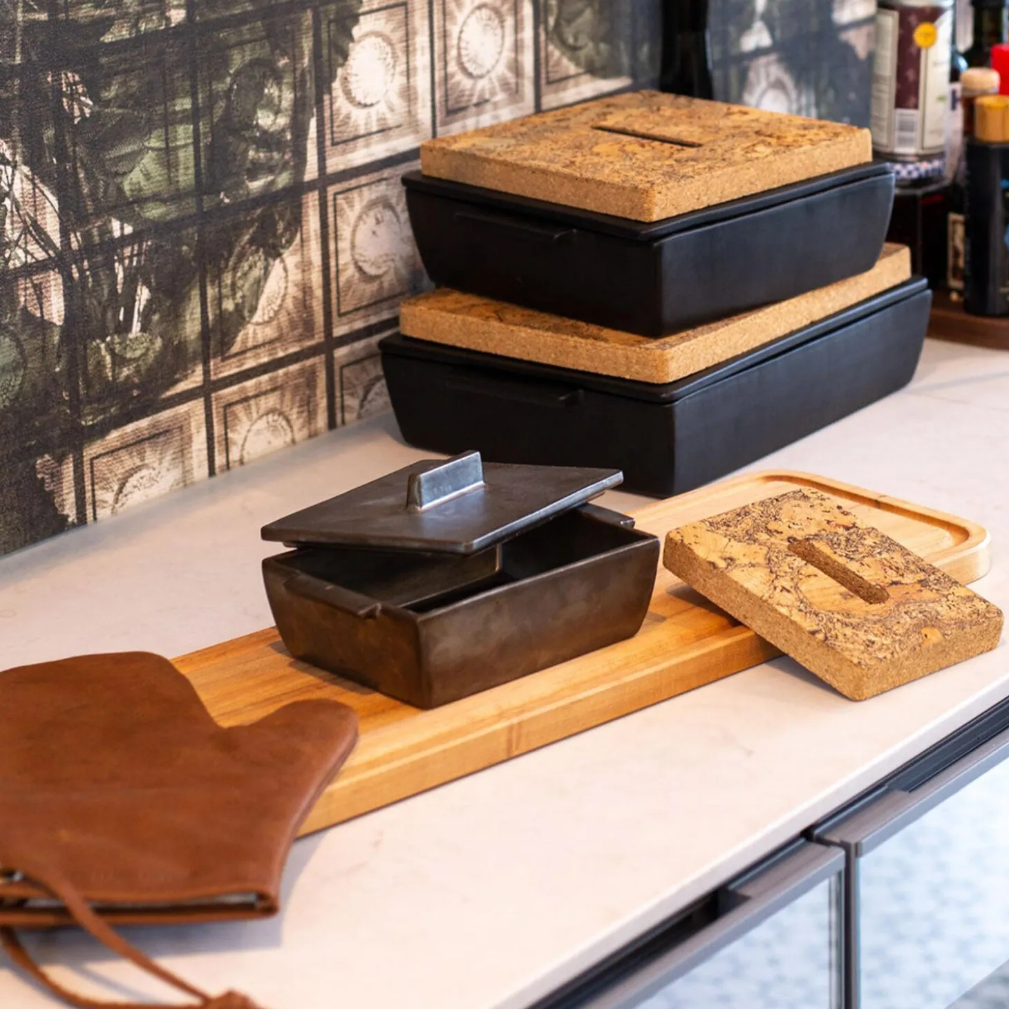 Rektangulært ovnfast fad med varmebrik fra Dutchdelux.