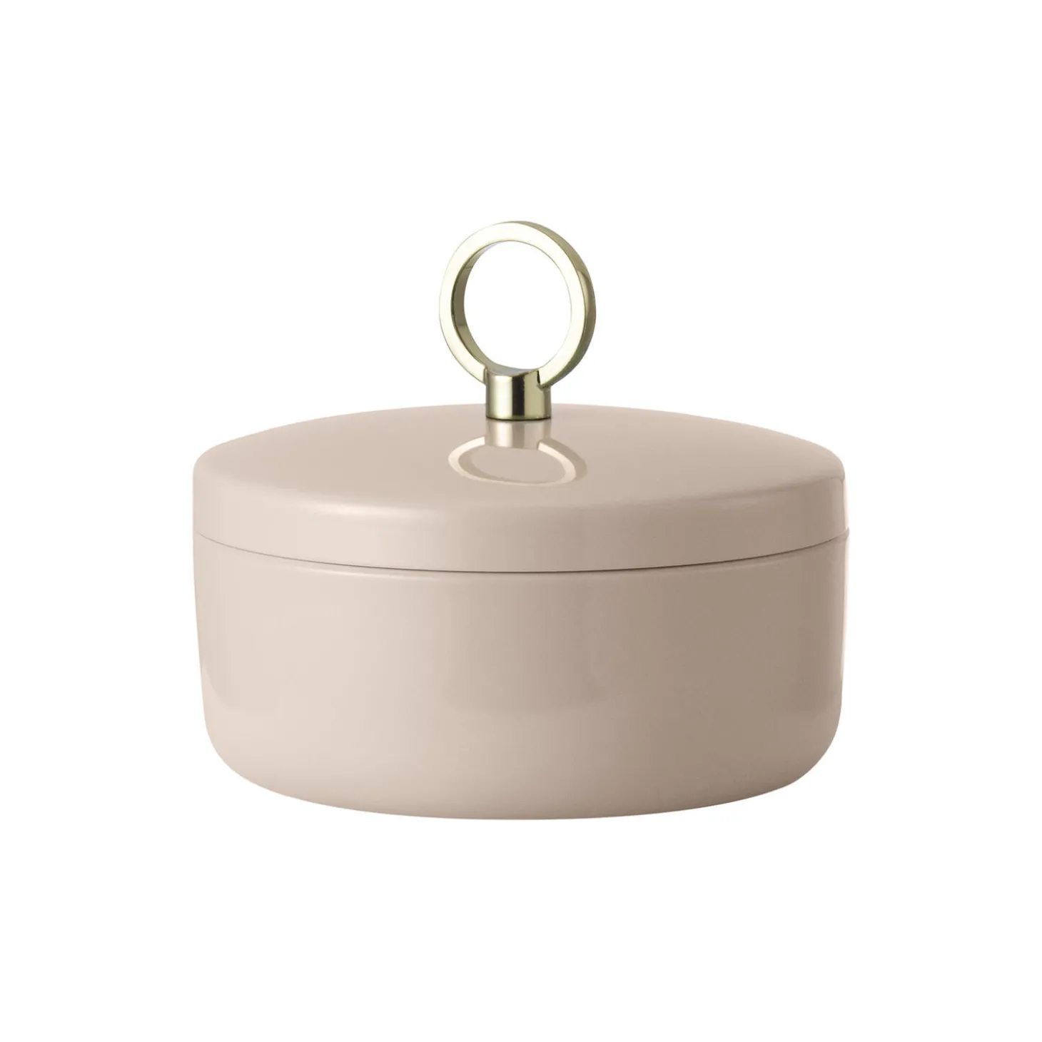 Ring er en serie af små, elegante æsker til opbevaring af personlige småejendele som smykker, skønheds-og kontorartikler. Ring boks er udført i blank, pulverlakeret stål og kommer i tre størrelser i rolige jordtoner af sand, grå og gråbrun. Lågets gyldne ring fungerer som et både funktionelt element og en dekorativ detalje.