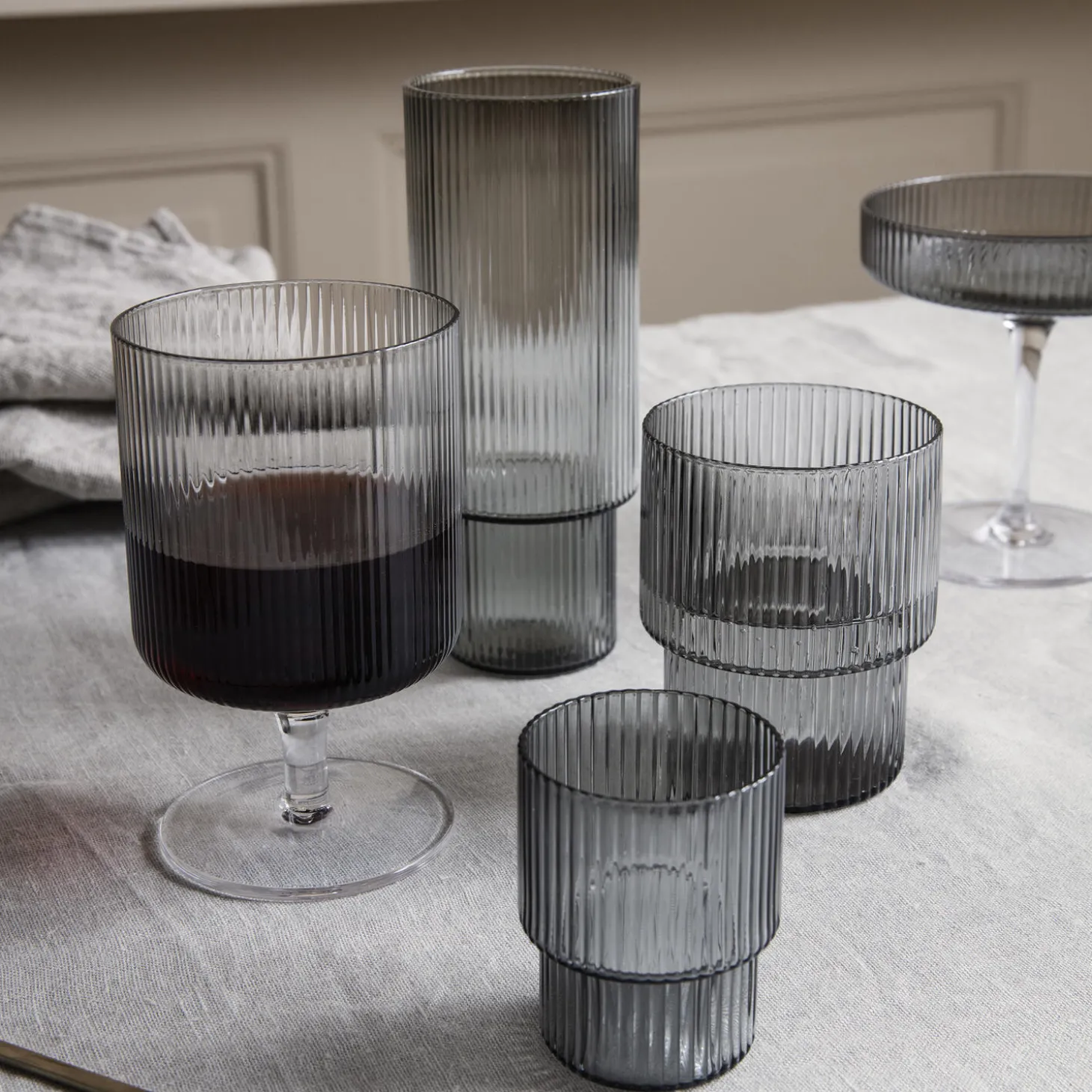 Som en lille version af de originale Ripple-glass giver dette sæt af fire snapseglas dig et elegant nyt medlem til din borddækning. De er mundblæste, og hvert af de fire glas er designet med de særlige geometriske niveauer, der karakteriserer den øvrige serie. Brug glassene til din foretrukne spiritus, til dressing og dip eller måske endda som æggebæger.