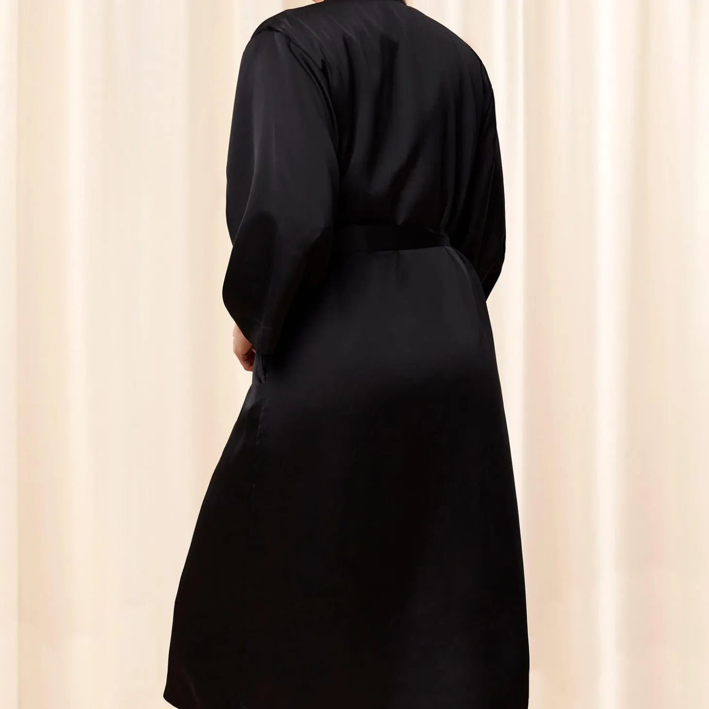 Med denne luksuriøst bløde satin-kimono vil du føle dig smart og afslappet hele vinteren. Den raffinerede fleeceforing giver den perfekte balance mellem varme og komfort. Designet med et glat bælte af satin, som er nemt at binde, og lommer i sidesømmene.