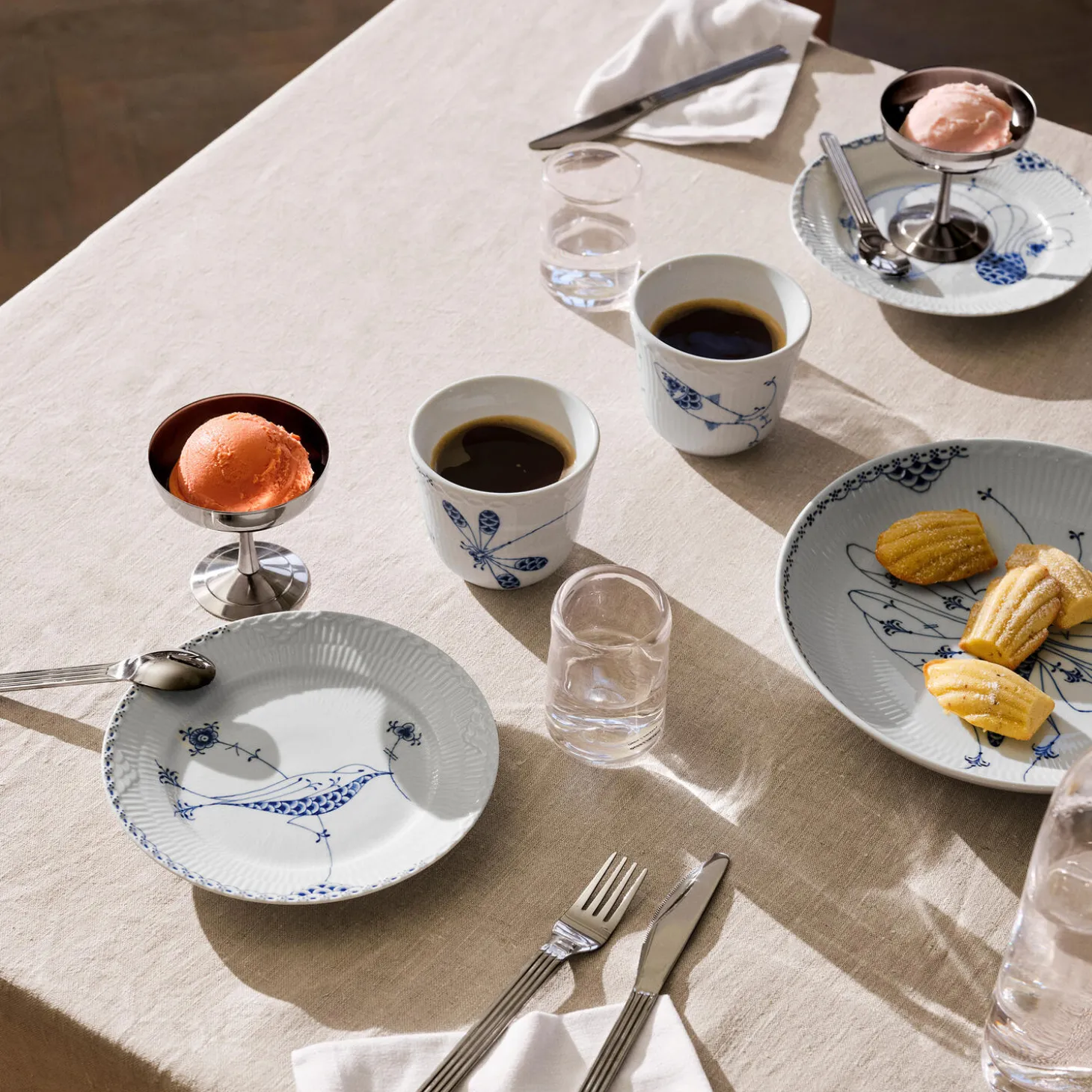 Royal Creatures nye termokop ‘guldsmed’ er den fjerde dekoration i samlingen af termokopper skabt af designduoen GamFratesi. Royal Creatures universet er udvidet til at omfavne nye dyr i den finurlige samling. Alle skabningerne er smukt skitseret i den klassiske koboltblå nuance. Koppens ydre og indre lag sørger for, at porcelænet ikke blivet varm at røre ved. Velegnet til mindre kopper af din yndligste eller -kaffe.