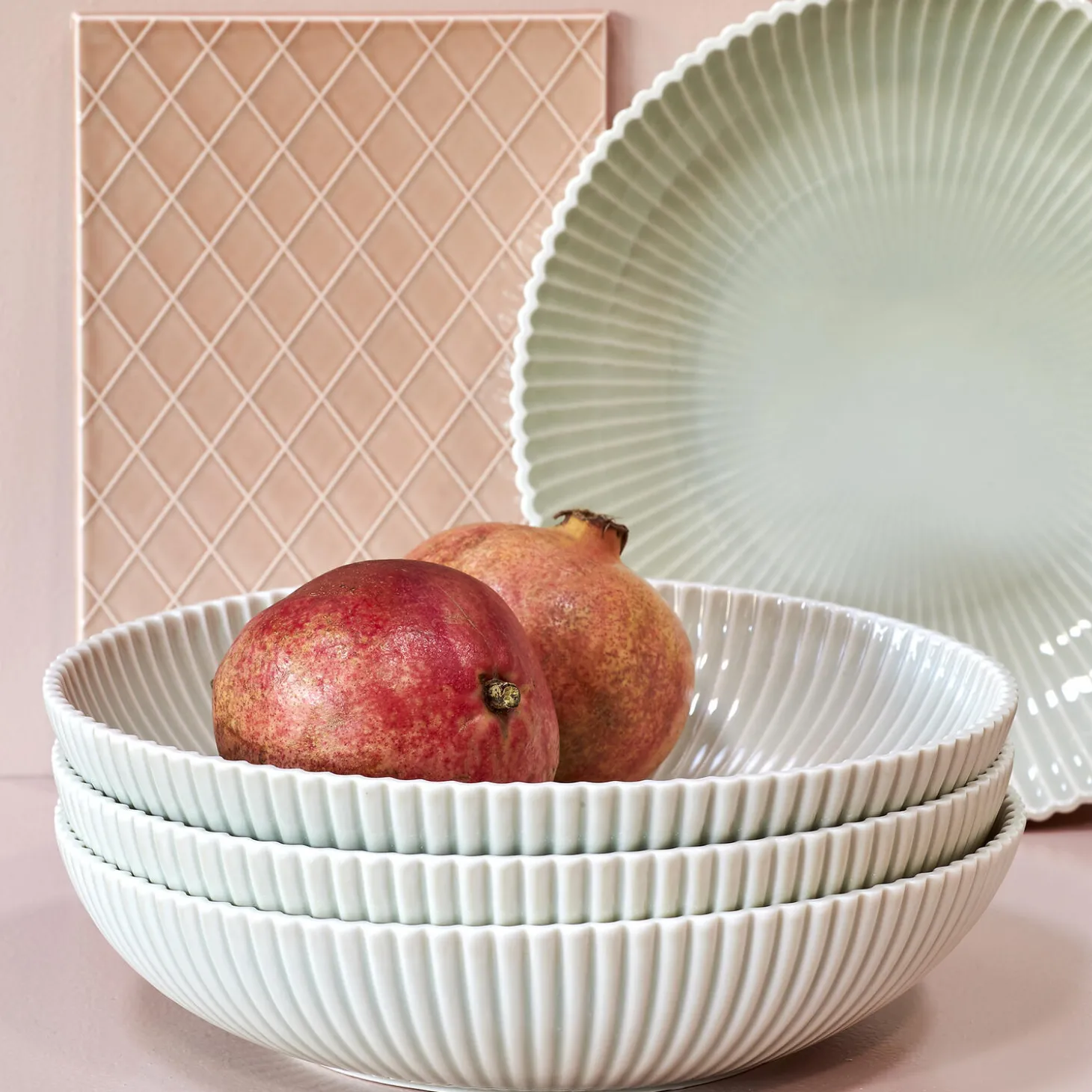 Kendetegnet ved vores skåle er de buede former, der kun kan opnås ved håndlavet produktion. Skålen kan bruges til at servere suppe i, til frugt og grøntsager. Tåler opvaskemaskine og mikrobølgeovn.