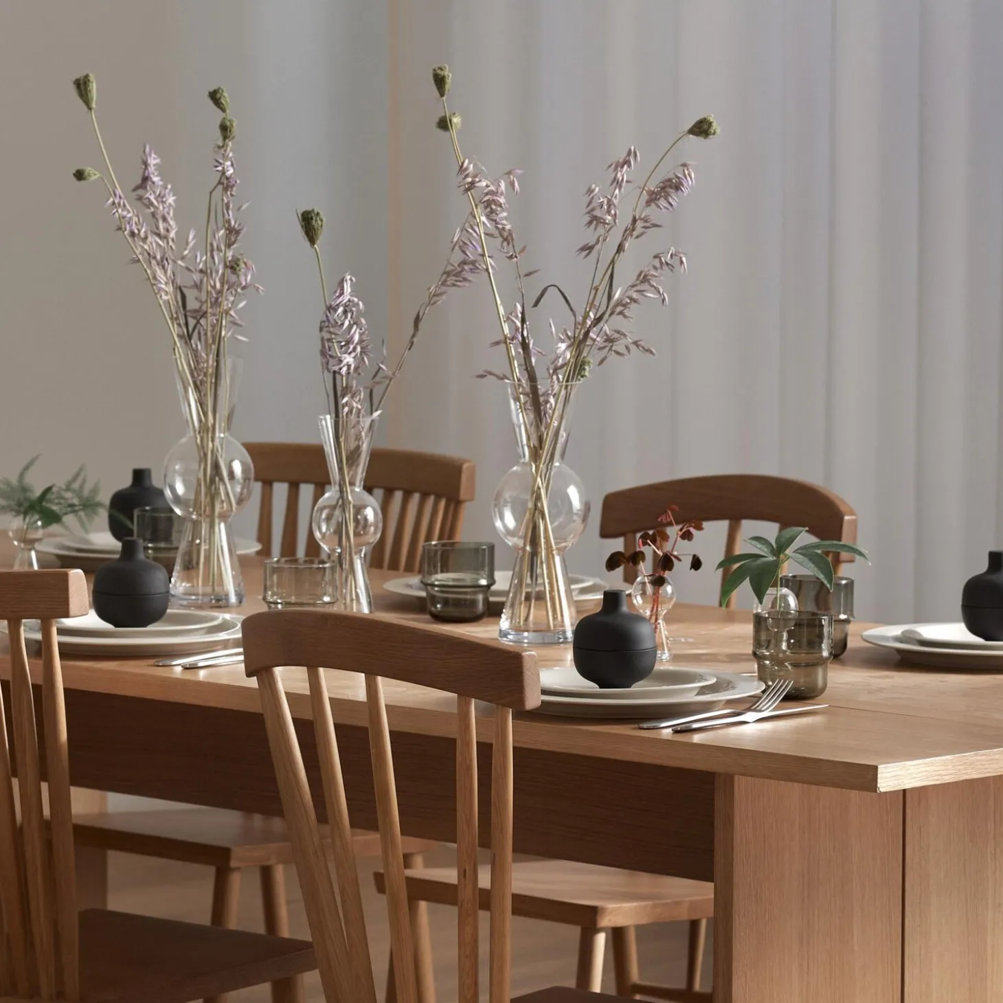 Carina Seth Andersson has once again managed to balance perfection and particularity in her new additions to Sand, her series of stoneware originally conceived for Nationalmuseum in Stockholm. The different objects are abstract yet familiar, alluding to age-old traditions refined to perfection. ‘There is a moment of surprise when you lift the lid,’ says Carina Seth Andersson. ‘The secrets of the chef unveiled! Together these earthenware objects will create a whole little landscape on the table.’ The trend to bring forward a multitude of different dishes for the table certainly does require the stage be set with a variety of vessels. Glazed on the inside, raw but softly polished on the exterior, the three black and clay-colored earthenware canisters are available in three different sizes.