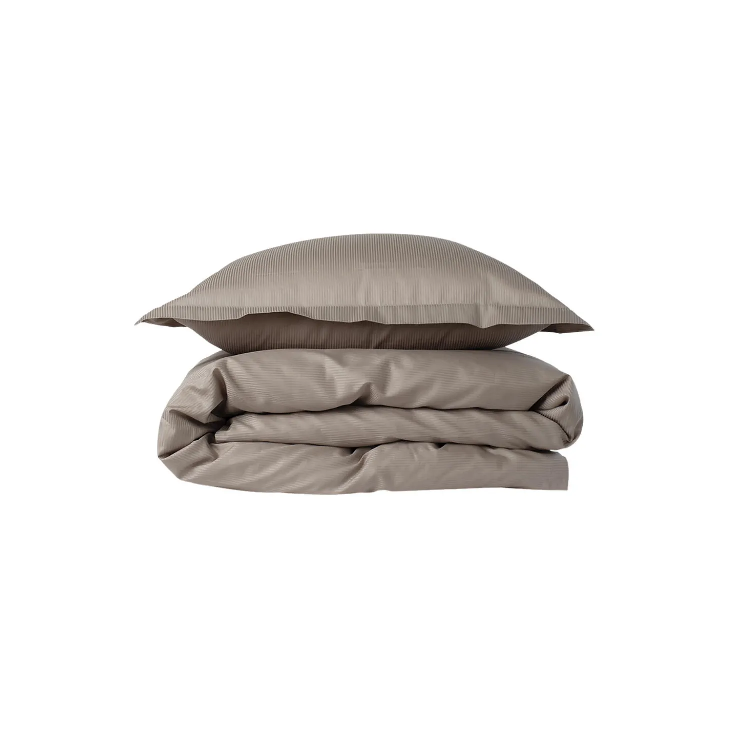 Satinvævet smal strib sengetøj fra Geismars Væverier.