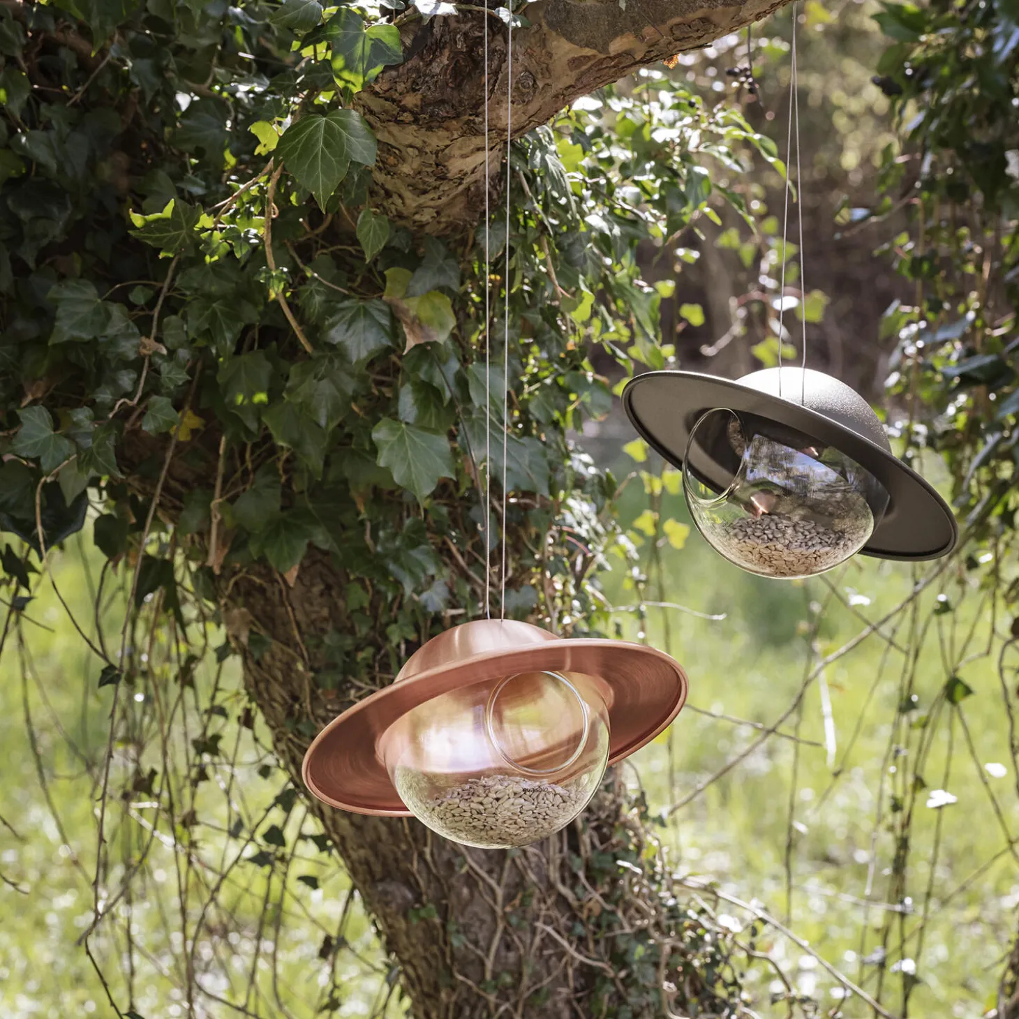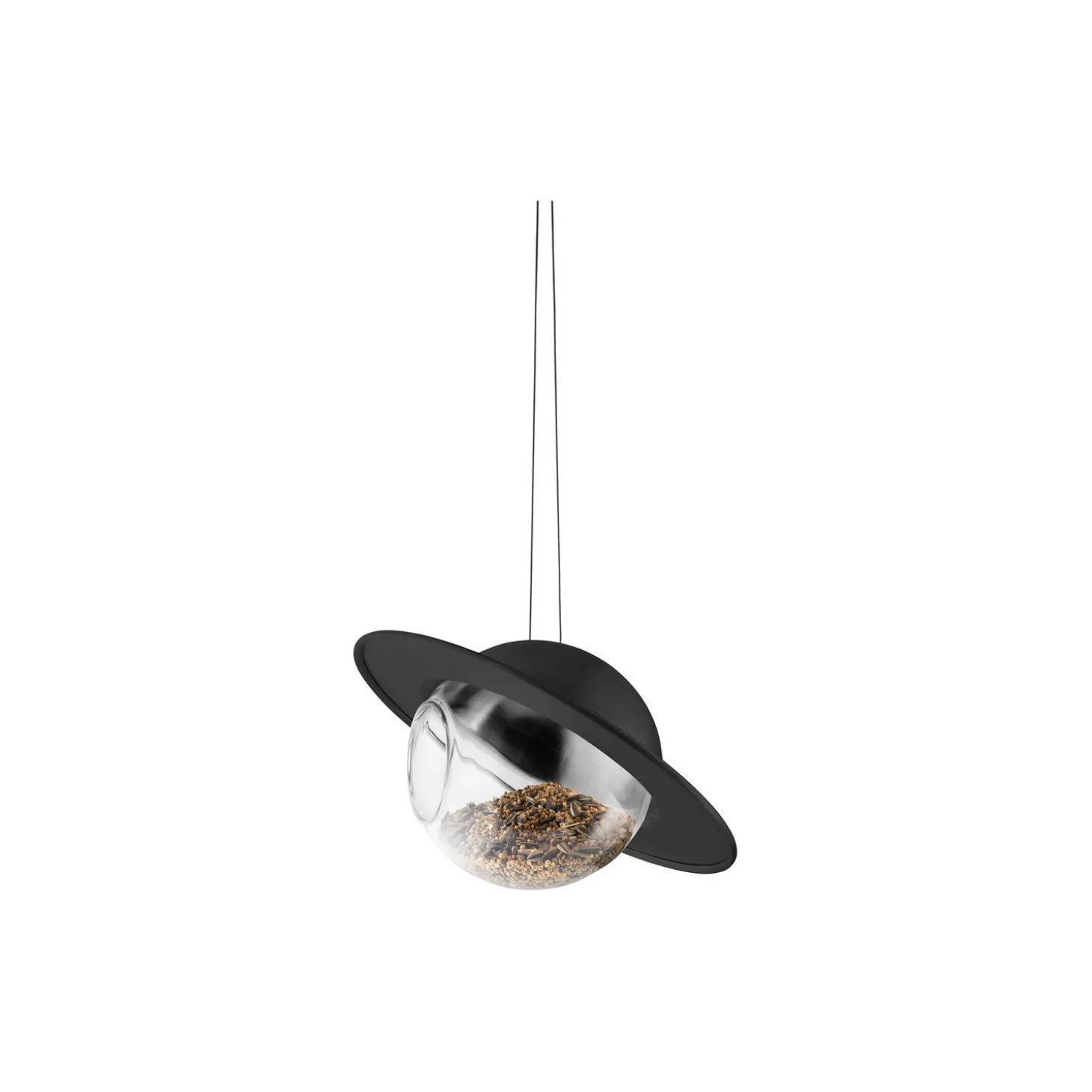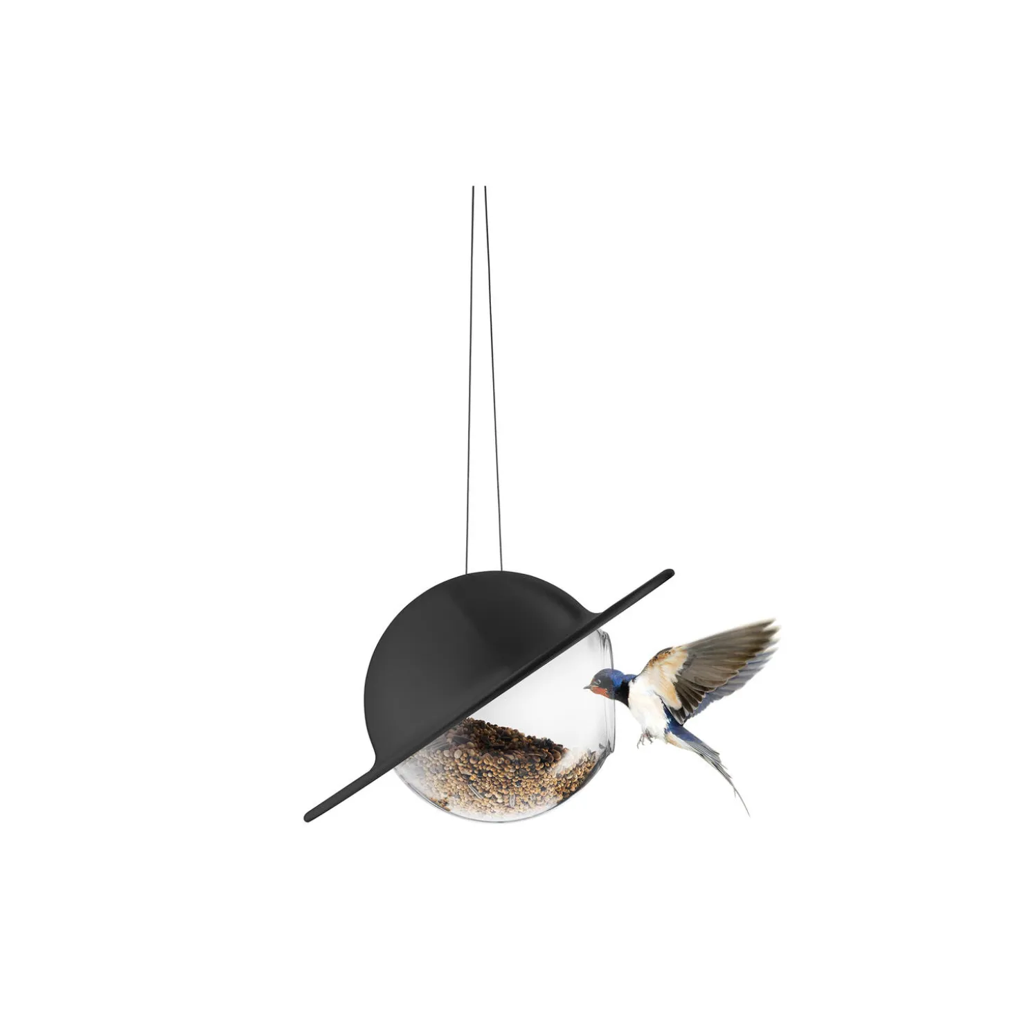 Inviter nabolagets fugle til en fornem middag. Fuglefoderkuglen er forsynet med et dekorativt halvtag, som ikke alene holder foderet tørt, men også forhindrer større fugle i at snuppe maden fra de mindre. Takket være kuglens gennemsigtige glasbund kan du nemt holde øje med, hvornår det er tid til at genopfylde fuglefoder – selv på afstand. Du behøver heller ikke bekymre dig om vedligeholdelse; materialerne er vejrbestandige og designet til at modstå al slags vejr hele året rundt.
