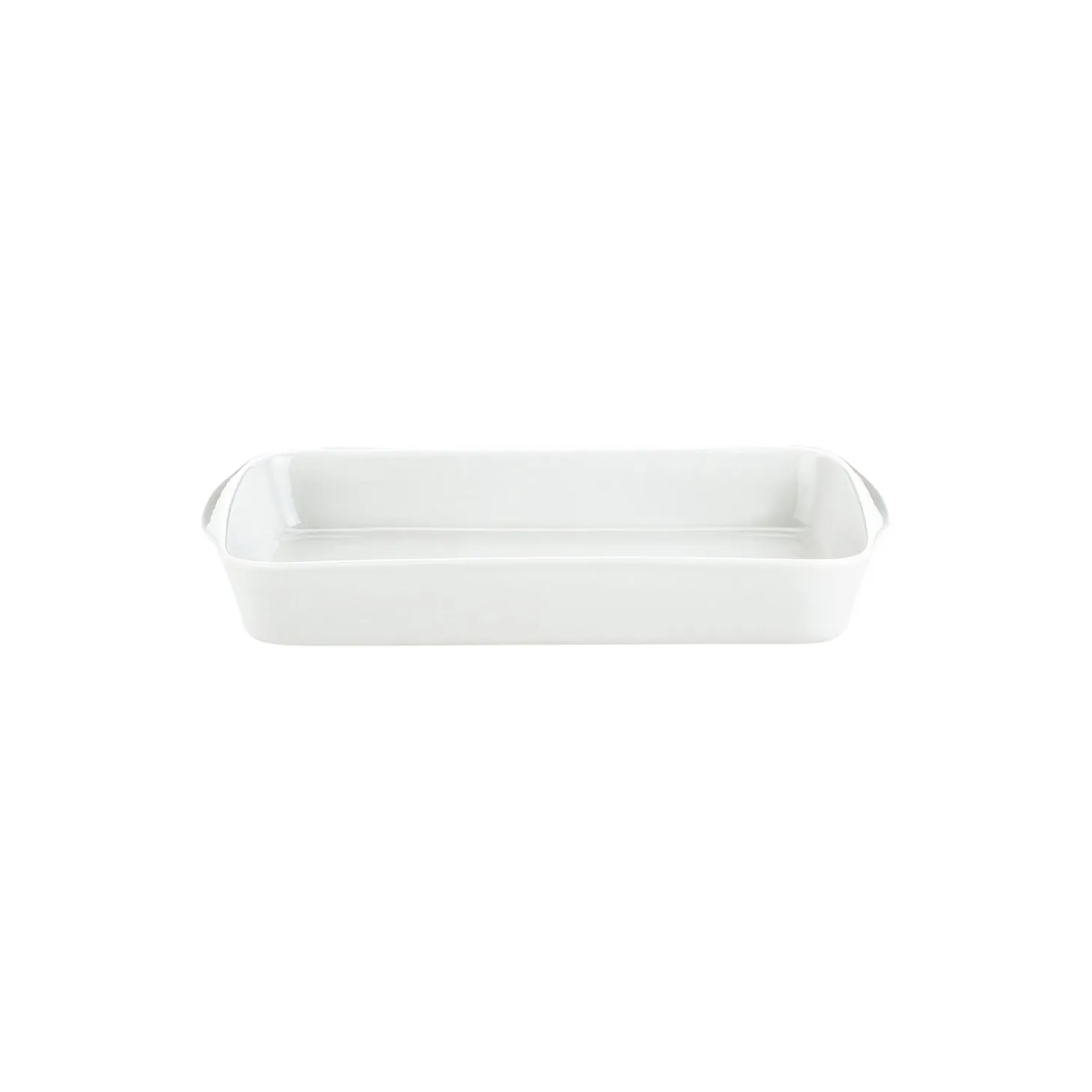 Rektangulært fad på 24 x 14,5 cm med lave kanter til ovn, grill og servering.