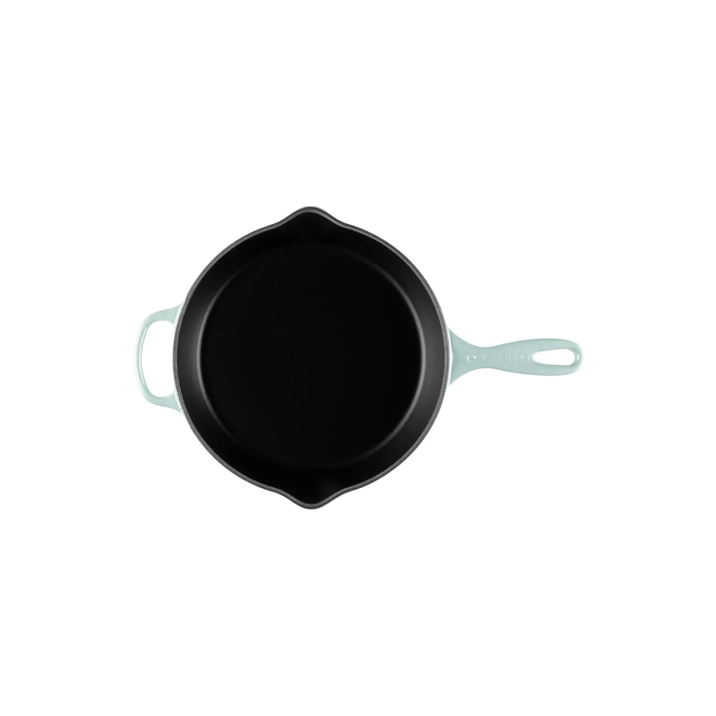 Panden er formstøbt af vores legendariske støbejern, så den kan bruges i ovnen såvel som på kogepladen. Den er i sandhed et essentielt redskab i køkkenet og har et greb, som gør den nem at flytte rundt på. Den har desuden to hældetude for drypfri servering. Klar til at servere? Kan sættes direkte på bordet.