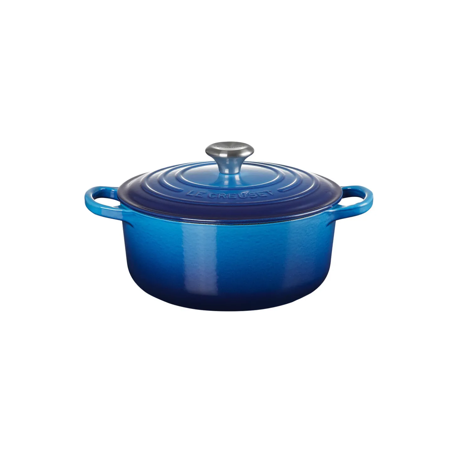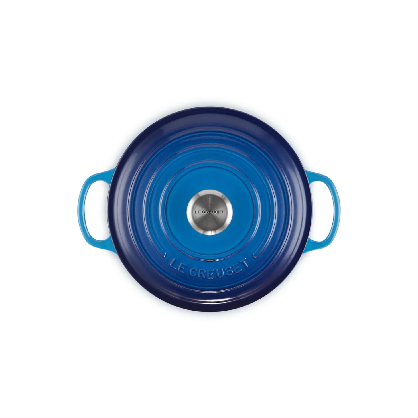 Le Creuset-gryden er en kulinarisk klassiker, som har været elsket af kokke i hele verden i næsten et århundrede. Denne klassiker er perfekt til stuvninger, stege, supper, gryderetter og bagning. Du behøver kun dette ene, ikoniske produkt til alle dine forskellige og mindeværdige måltider, der får tænderne til at løbe i vand. Låg med rustfri stål- eller fenolknop tåler opvaskemaskine. Låg med guld-, iriserende-, kobber- og sort nikkelknop skål håndvaskes for at bevare deres finish.