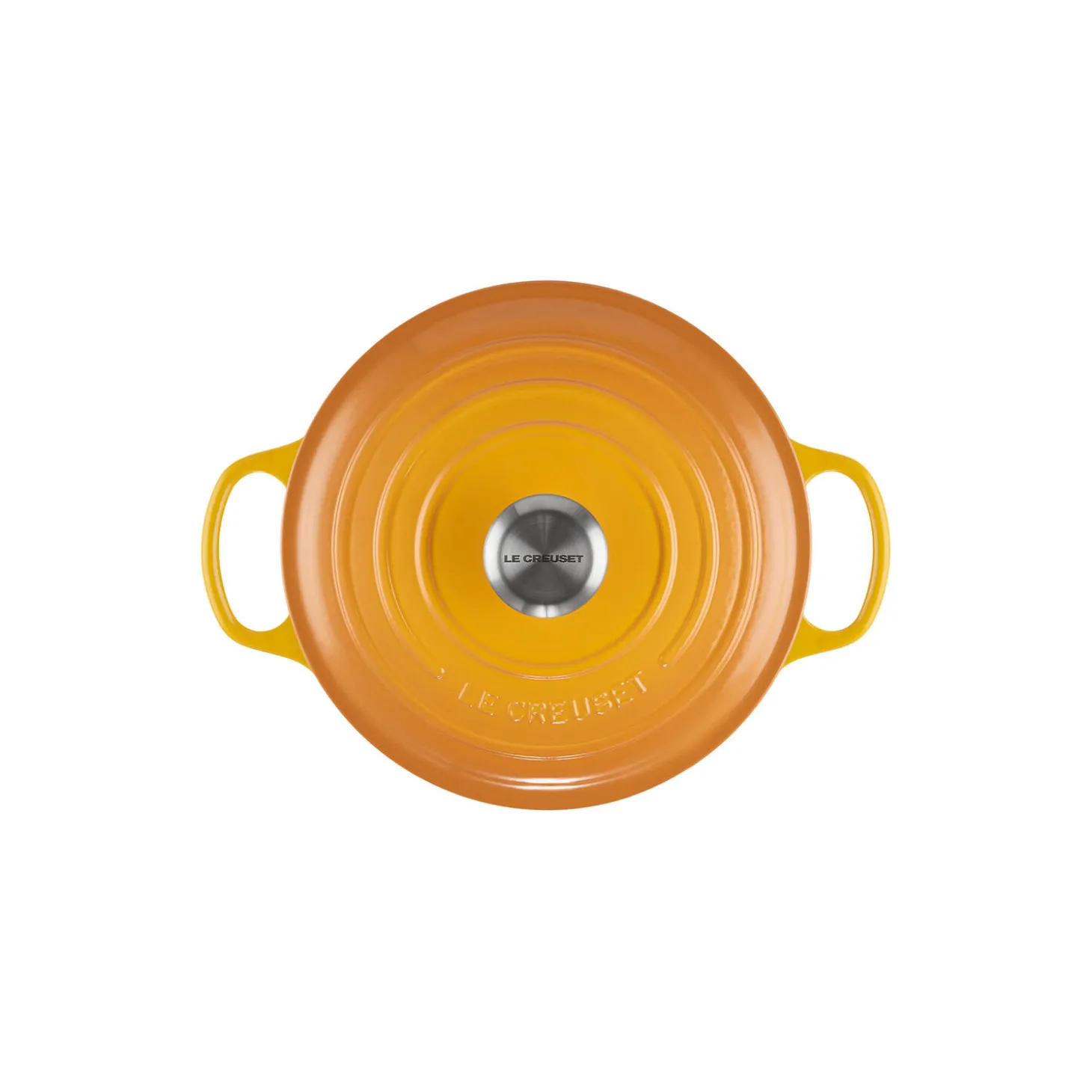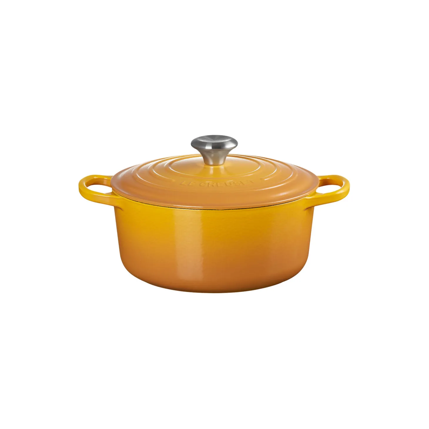 Le Creuset-gryden er en kulinarisk klassiker, som har været elsket af kokke i hele verden i næsten et århundrede. Denne klassiker er perfekt til stuvninger, stege, supper, gryderetter og bagning. Du behøver kun dette ene, ikoniske produkt til alle dine forskellige og mindeværdige måltider, der får tænderne til at løbe i vand. Låg med rustfri stål- eller fenolknop tåler opvaskemaskine. Låg med guld-, iriserende-, kobber- og sort nikkelknop skål håndvaskes for at bevare deres finish.