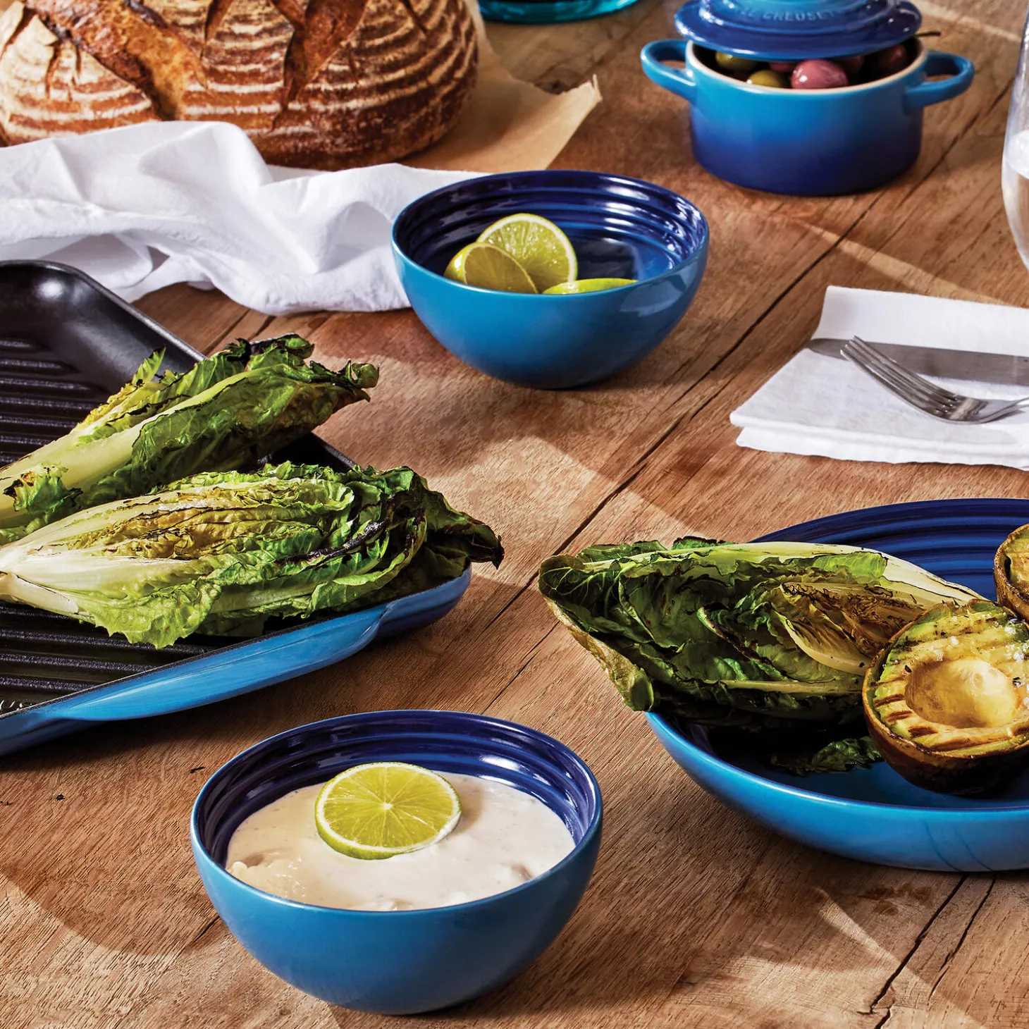 Snacks. Fingermadder. Dip. Server smagfulde lækkerier i denne alsidige stentøjsskål. Den passer til det andet serveringsudstyr fra Le Creuset, så du kan sammensætte din egen kollektion. Du kan endda opbevare den sammen med dine andre skåle. Det ikoniske design med tre ringe tilføjer et karakteristisk udtryk til din borddækning.