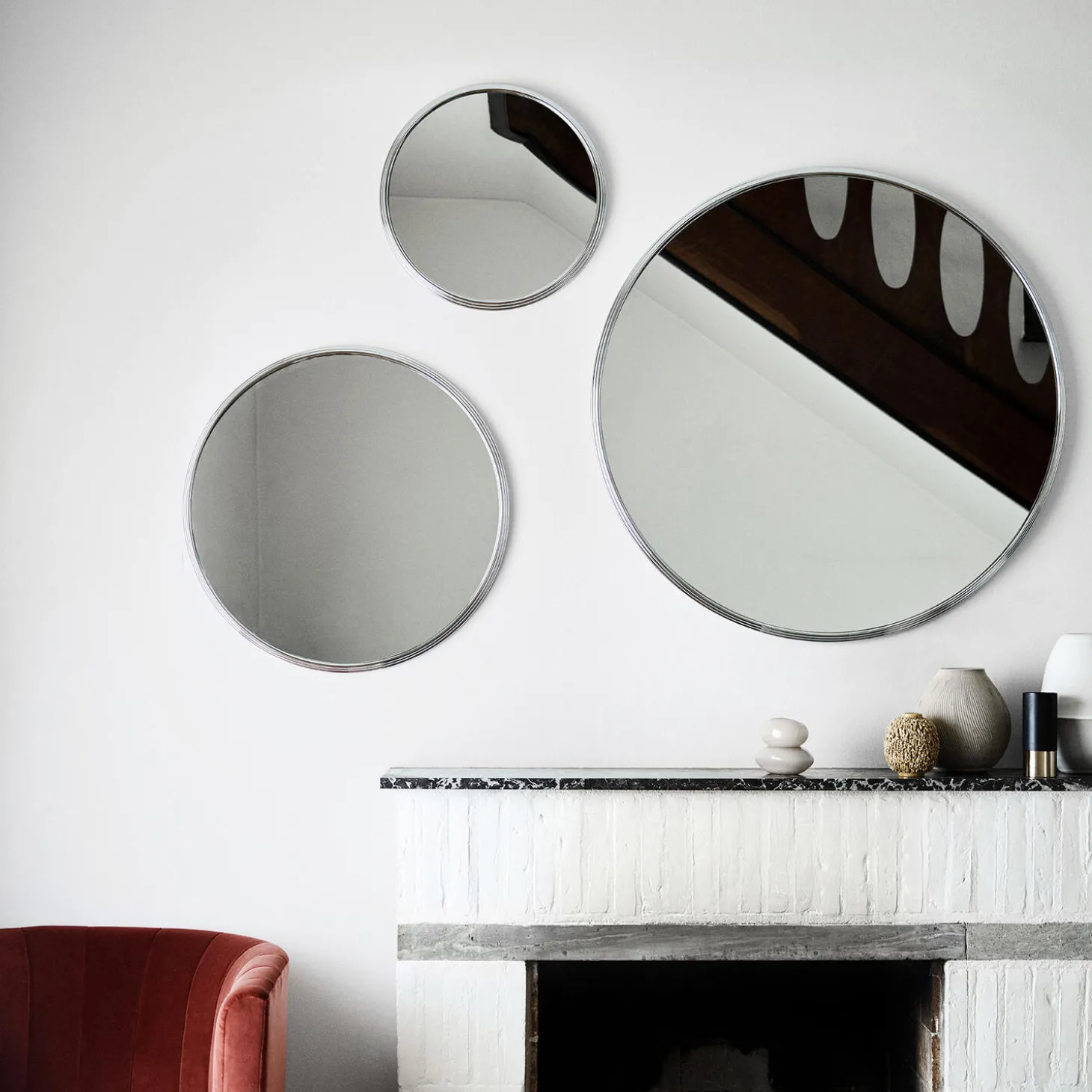 Sillon SH4 vægspejl i krom fra &Tradition. Farve: krom. Mål: Ø 46 cm. Design: Sebastian Herkner.