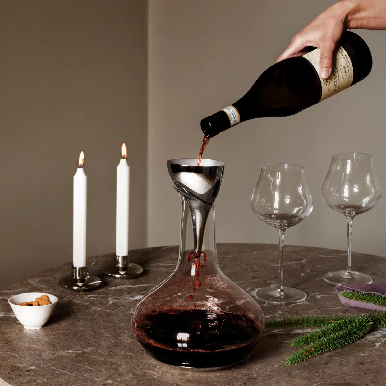 Opmærksomheden på de små detaljer kendetegner en fantastisk vært, og en karaffel optimerer både præsentationen og smagen af vinen. Brug denne stilfulde asymmetriske iltningstragt til at overføre vinen fra flaske til flaske, og giv hele ceremonien et ekstra stilfuldt pift. Den er fremstillet af rustfrit stål og leveres med et særligt aftageligt filter, der fjerner aflejringer og udgør det perfekte tilbehør til Sky-karaflen.