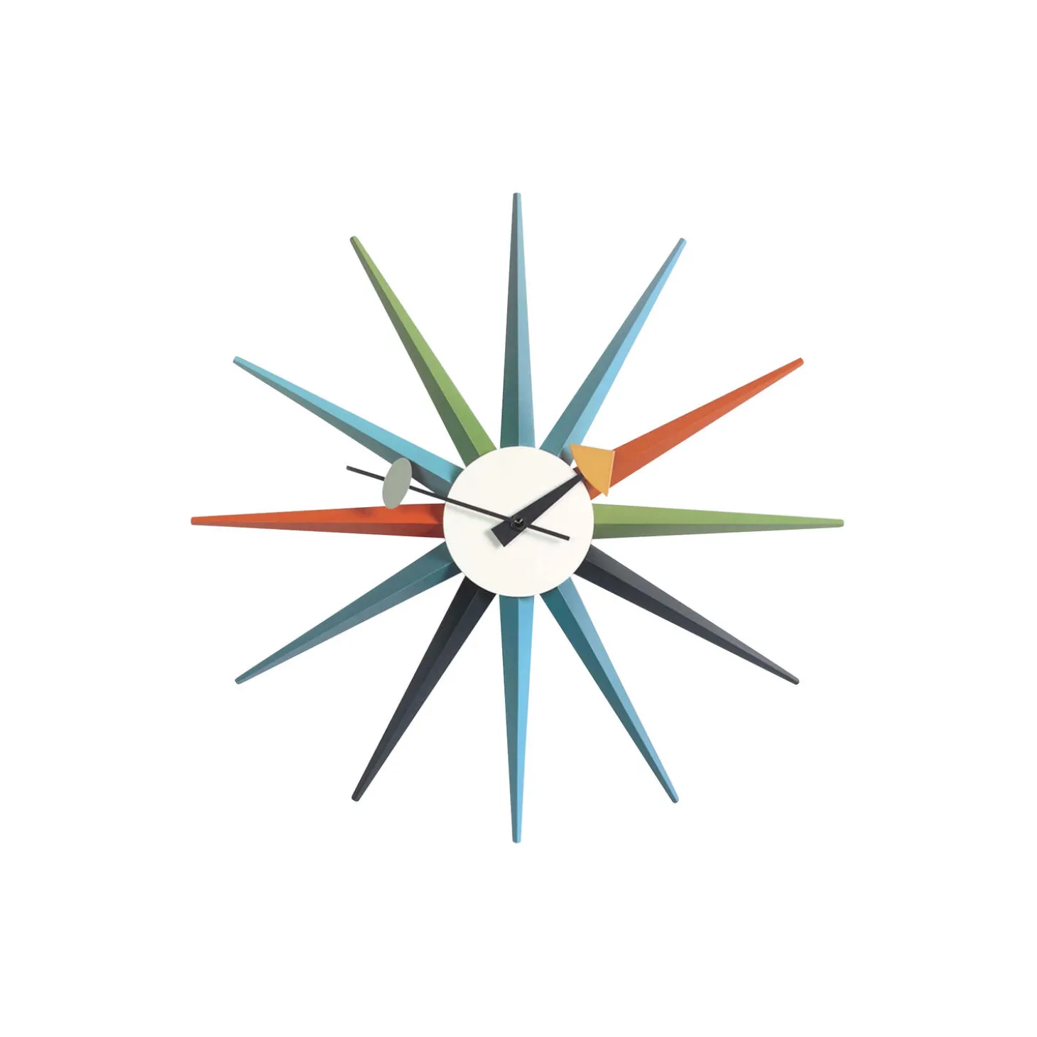 Sunburst vægur i træ og metal fra Vitra. Farve: multi colour. Mål: Ø 47 cm. Design: George Nelson.