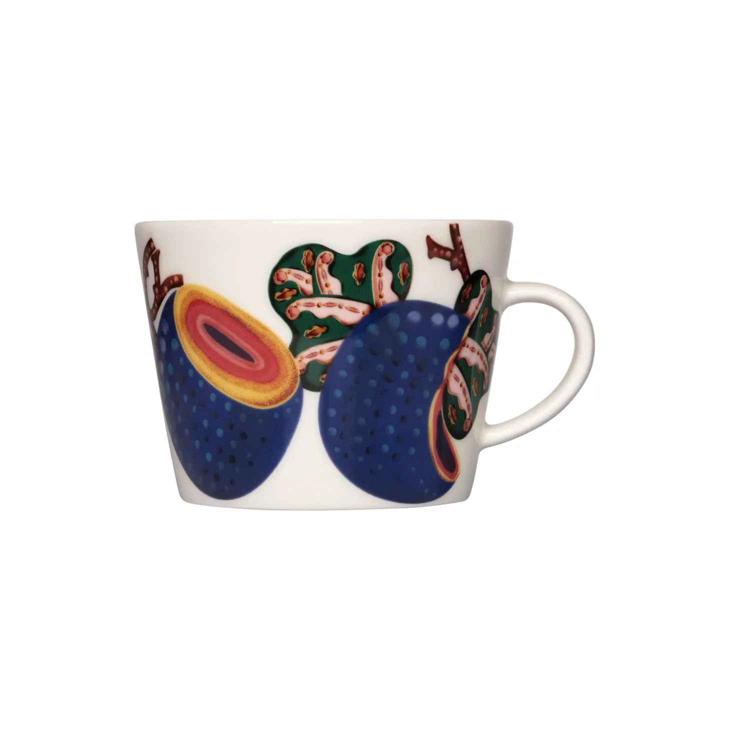 The Taika Sato collection combines Klaus Haapaniemi’s art with a functional design by Heikki Orvola. Drawing inspiration from still lives, Haapaniemi portrays fruit and vegetables in his personal style. Thanks to its versatile size, the cappuccino cup is also ideal for enjoying coffee, tea and other hot beverages. You can create particularly delightful settings by combining the Taika cappuccino cup with Iittala’s single-colour pieces. The cup is microwave-safe and dishwasher-safe.