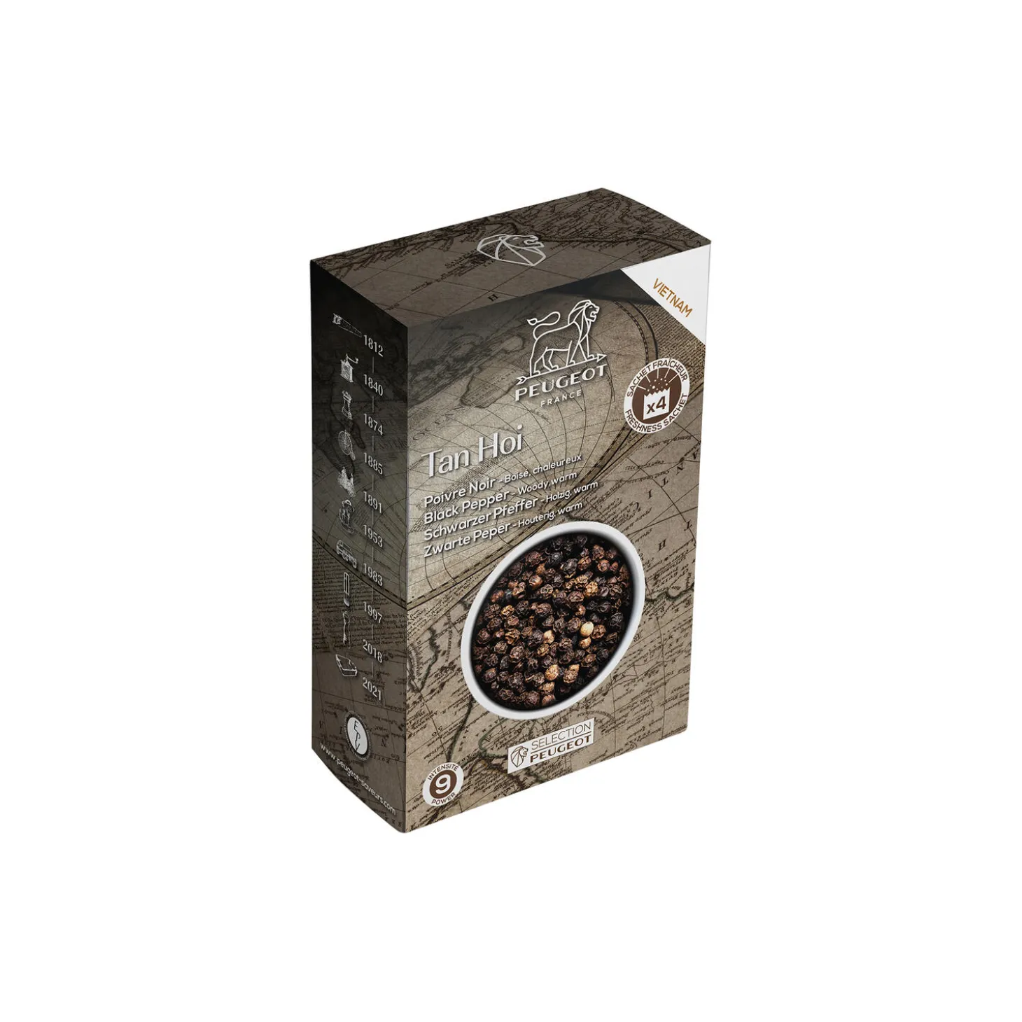 Sorte Tan Hoi peberkorn fra Vietnam.80 gram – 4 breve a 20 gram.Denne type peber er velegnet til bl.a. rødt kød, fed fisk, kartofler, tomatbaserede retter, linser og kål og tilfører maden varme med en smagsnote af træ.