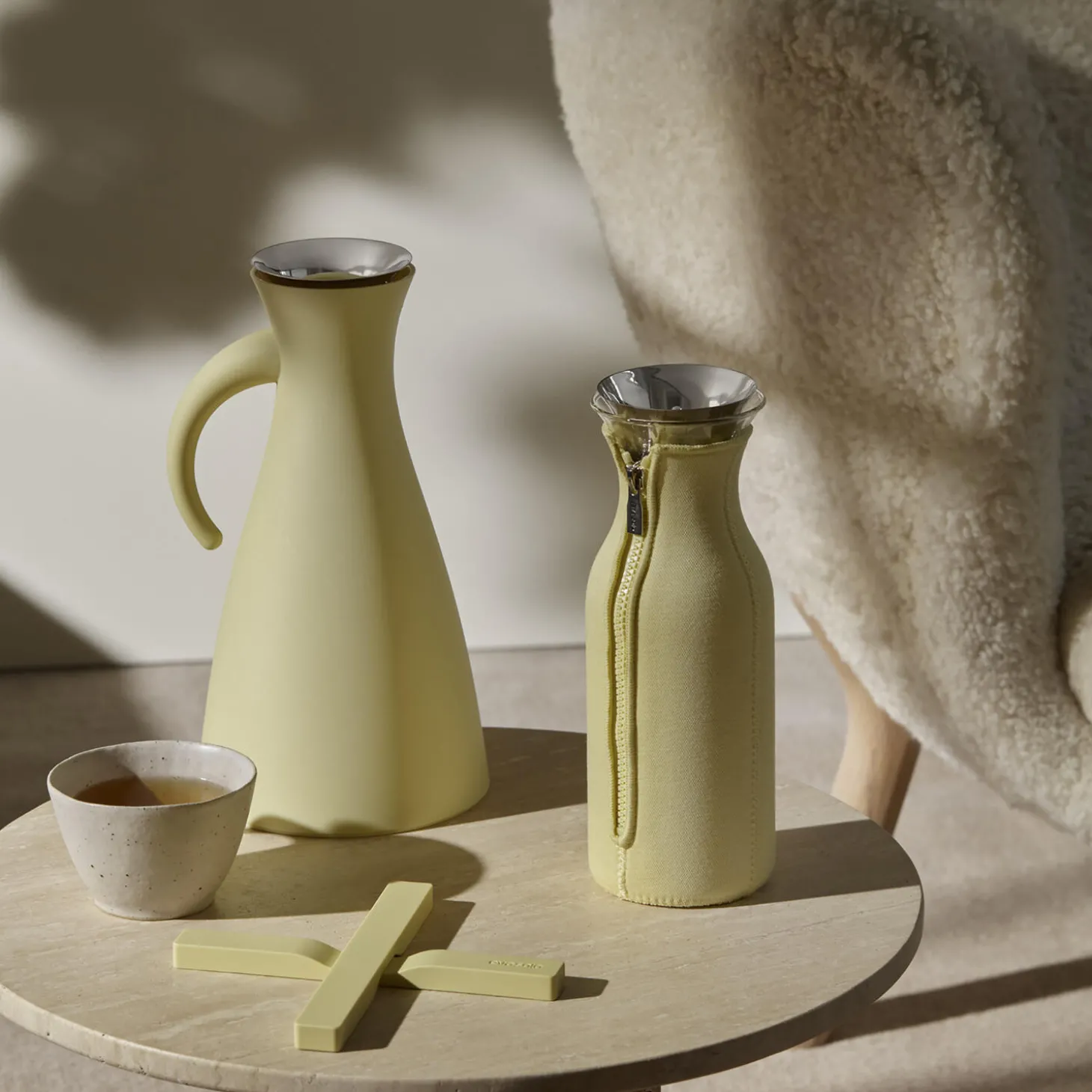 Det skulpturelle design bygger på det prisvindende koncept, der ved hjælp af en hældekrave i rustfrit stål gør termokanden 100% drypfri. Termokanden er med sin brede åbning i toppen nem at fylde, og det lave tyngdepunkt gør, at den står stabilt på bordet. Fremstillet i kunststof udvendigt, hældekrave af rustfrit stål og silikone og med en udskiftelig glaskolbe indvendigt.