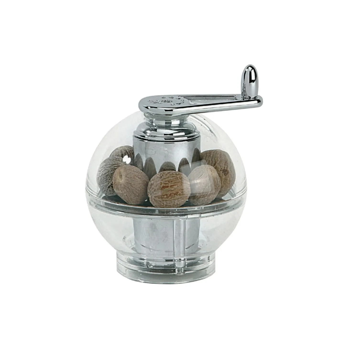 Kværnens afrundede design har plads til syv til otte hele muskatnødder. Drej på håndtaget, og alle muskatens aromaer frigives – uden at du risikerer dine fingre. Kværnværket har et dobbelt rivejern i rustfrit stål og en stærk â€kloâ€, der gør det muligt at rive muskaten helt fint.