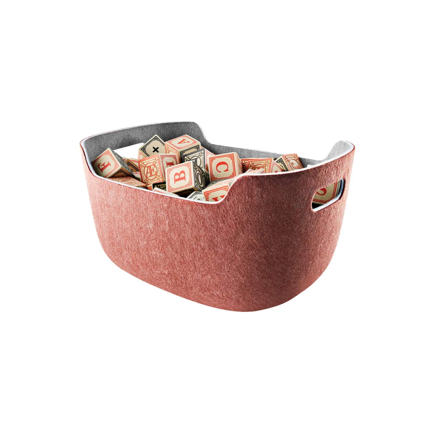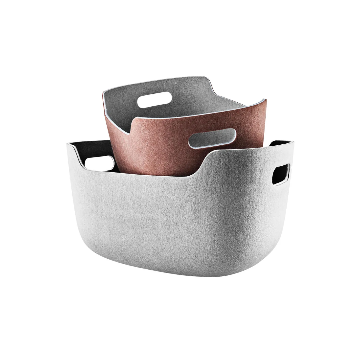 Gør dit hjem mere ryddeligt og organiseret med vores alsidige opbevaringskurve, der nemt kan rumme alt fra legetøj og bøger til kontorartikler og strikketøj. De behagelige håndtag gør kurvene ideelle til at transportere ting rundt i hjemmet, mens deres subtile og enkle design komplementerer enhver indretningsstil. Kurvene er solide i materialet og fremstillet af 100% genanvendt kunststof.