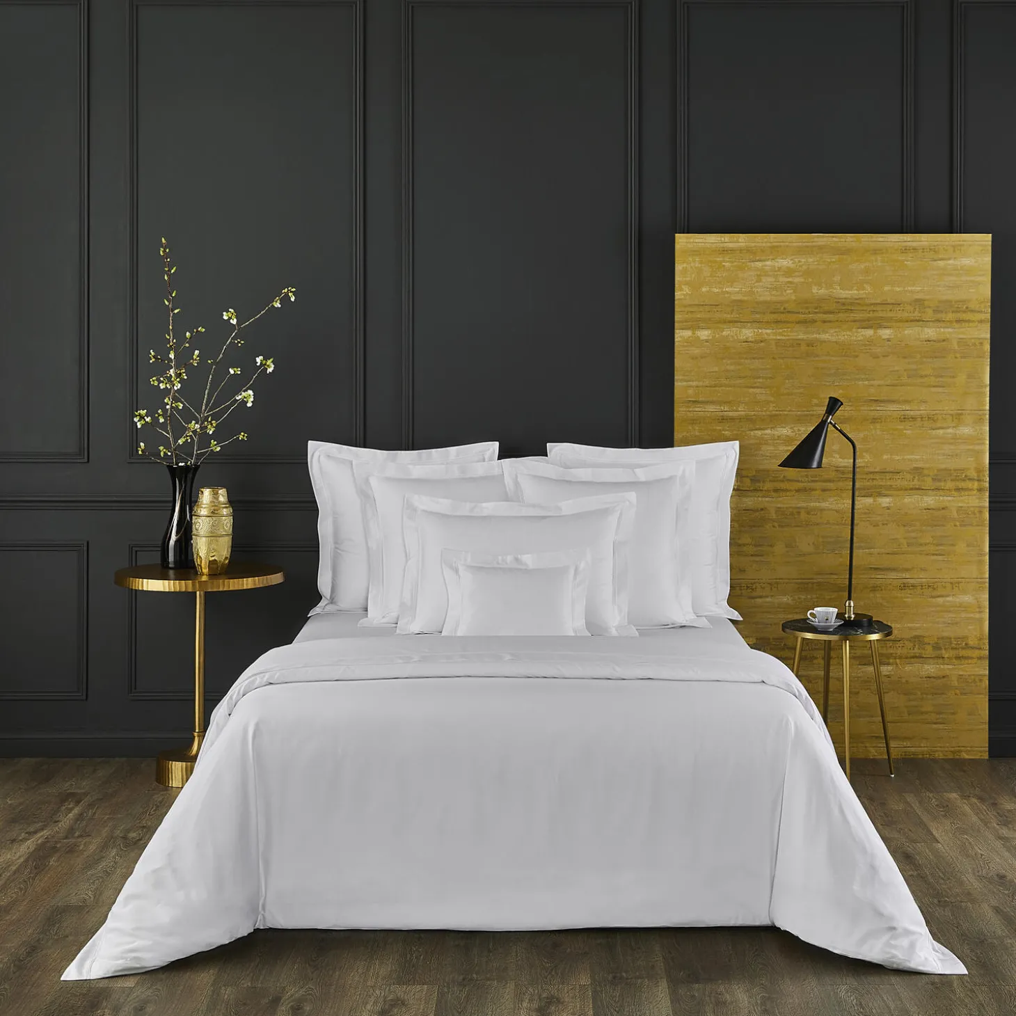 Triomphe sengetøj i 100% satinvævet egyptisk bomuld fra Yves Delorme. Farve: blanc.