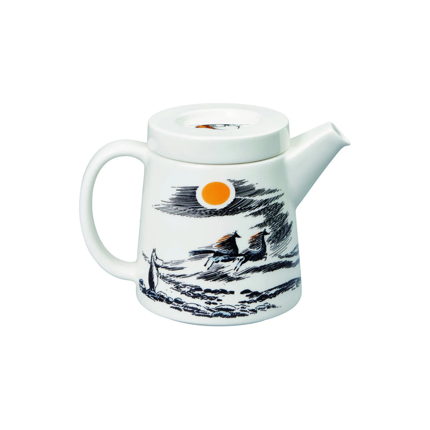 Mumi tekande Tro mod sin oprindelse i porcelain fra Moomin Arabia. Farve: hvid/sort/gul. Indeholder: 0,7 L. Design: Tove Slotte.