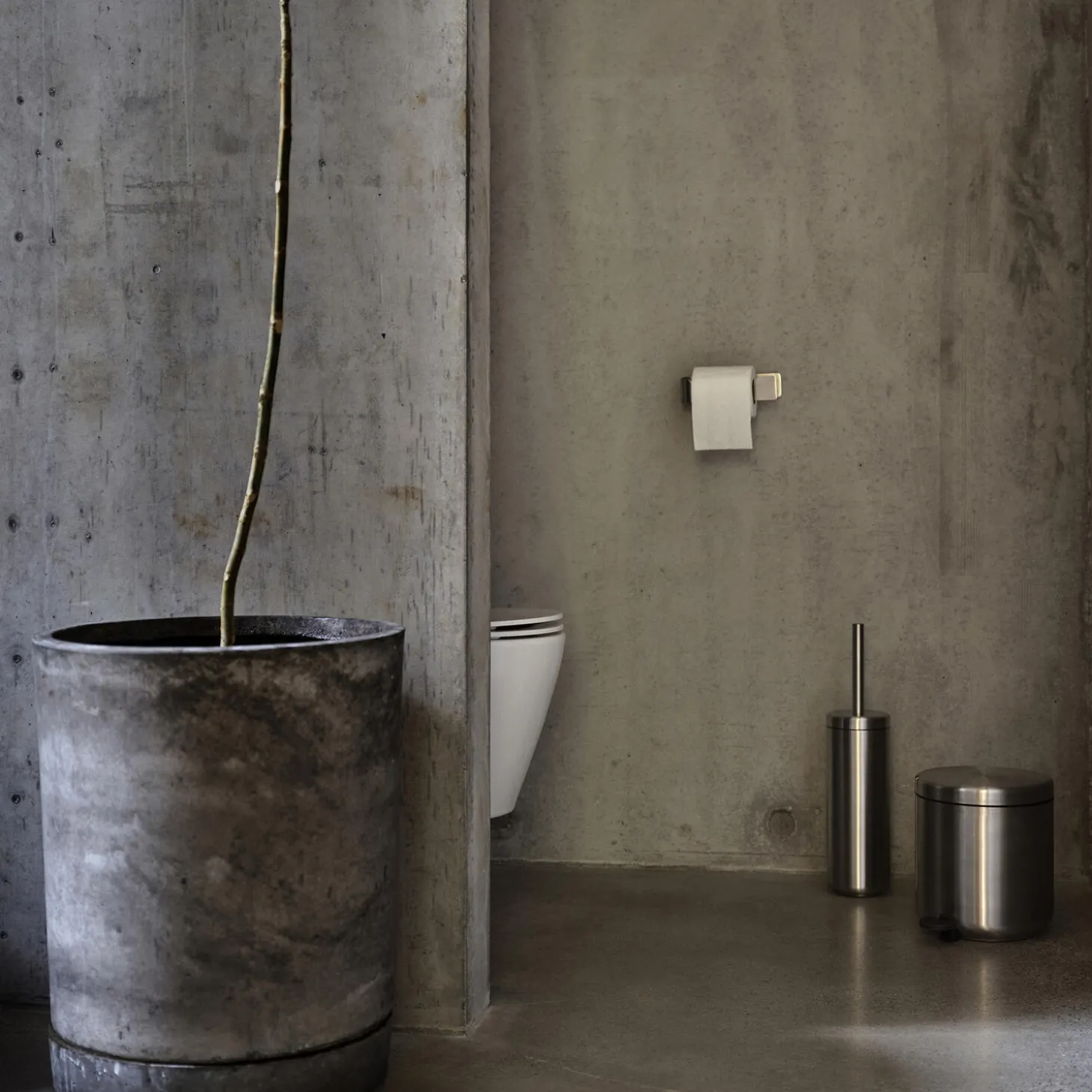 UME-serien har i flere år været et centralt ikon i Zones badkollektion. Nu udkommer serien i et eksklusivt nyt materiale, nemlig mat stål. Et oplagt valg til badeværelser og toiletter alle steder, hvor funktion og æstetik er i højsædet. De bløde organiske former får smukt modspil fra det stilrene og kølige stål i serien, som er skabt i samarbejde med designteamet VE2. I gulvhøjde byder serien på en mindre pedelspand samt toiletbørste i cylinderformet holder. Til væggen er der matchende toiletrulleholder samt kroge i elegant u-form med skjulte beslag. Til bordet findes både sæbedispenser, sæbeskål samt tandbørstekrus samt rundt bordspejl med vippefunktion. På trods af stålets mathed reflekterer lyset sig smukt i overfladen og giver overfladen liv og karaktér. Alt i alt en formfuldendt forvandling af en ægte Zone-klassiker.