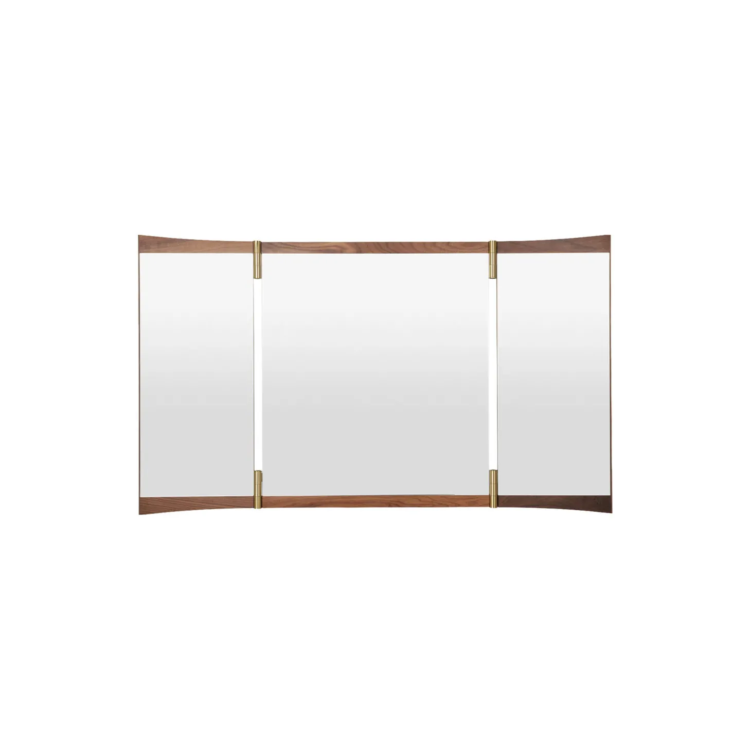 A contemporary echo ofthe 18th-century vanity-table mirror that gives it its name, the Vanity MirrorCollection is GamFratesi’s second wall-mounted mirror design for GUBI. Thecollection comprises three variations – with one, two and three mirror panels, respectively.The design’s defining features are its warm walnut veneer and brass hinges.These allow the angle of the mirror to be adjusted, influencing the perspectiveit offers and the play of the light in the room. On the single-panel VanityMirror 1, the hinges permit a 15º rotation, whereas the 180º hinges on theVanity Mirror 2 and Vanity Mirror 3 allow the panels to fold flat on top of oneanother, covering the mirror when not in use.