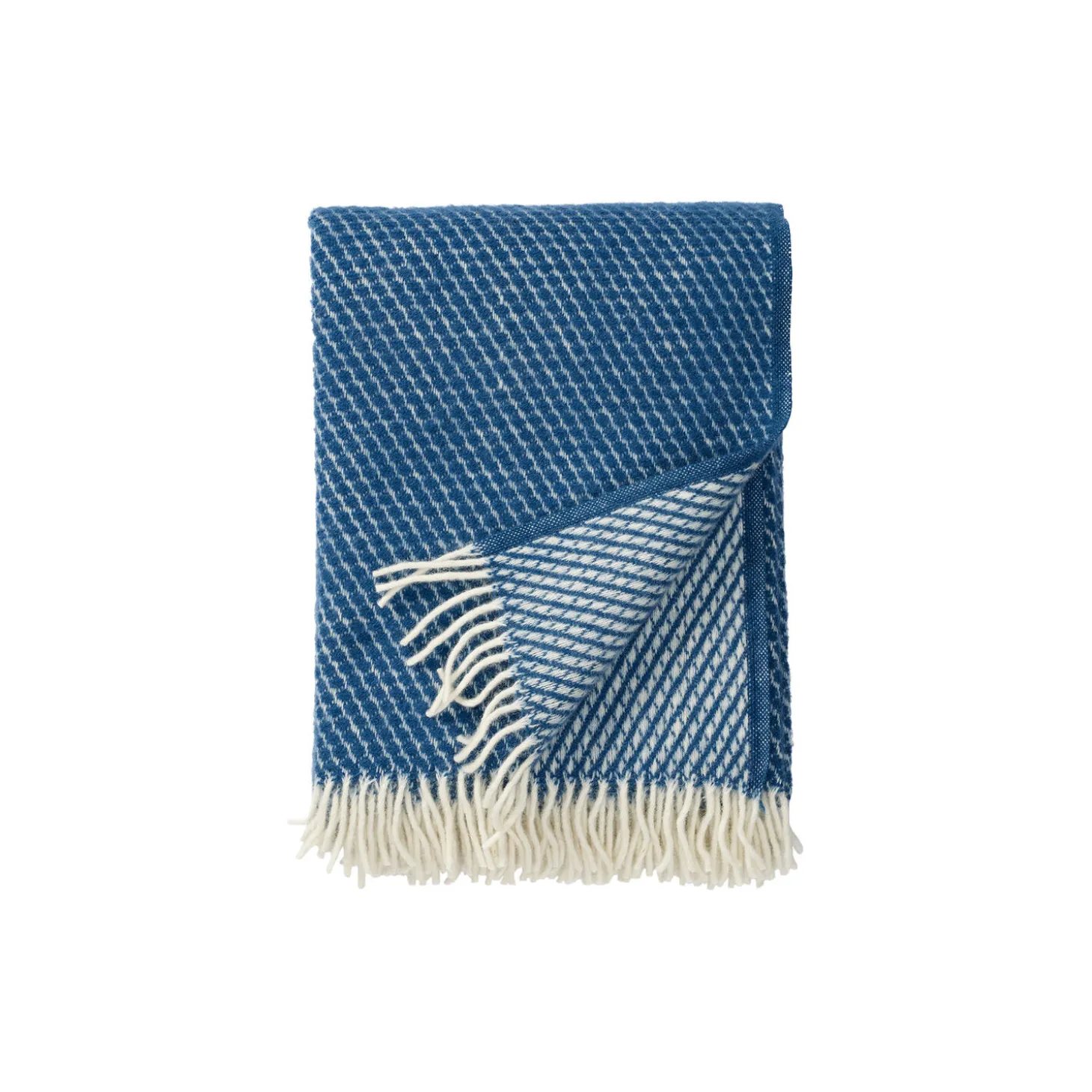 Velvet uld plaid i 100% lammeuld fra Klippan Yllefabrik. Farve: petrol. Mål: 200 x 130 cm.
