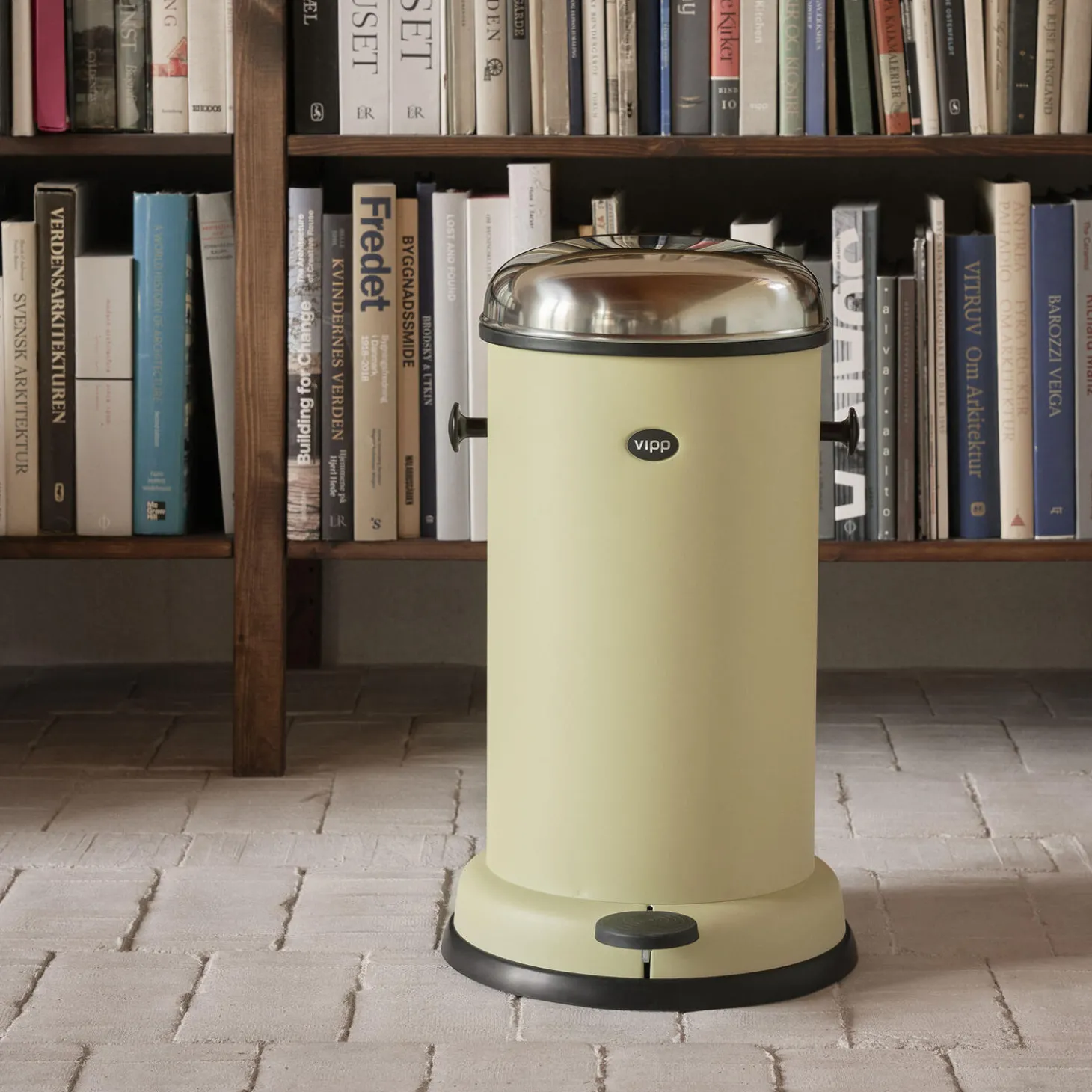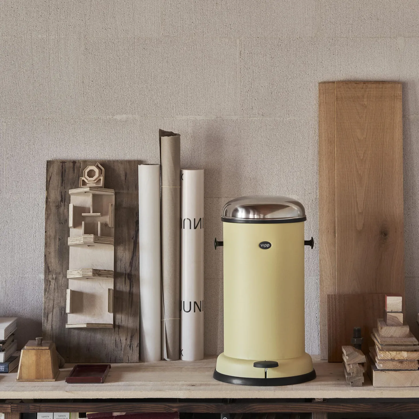 Vipp15 pedalspanden er en mellemstørrelse skraldespand til køkkenet, kontoret eller badeværelset. Denne pedalspand er udstyret med en udtagelig inderspand, et låg der sikrer lufttæt tillukning og en dæmpemekanisme, der lukker spandens låg i en blød bevægelse. En gummiring i bunden beskytter gulvet.