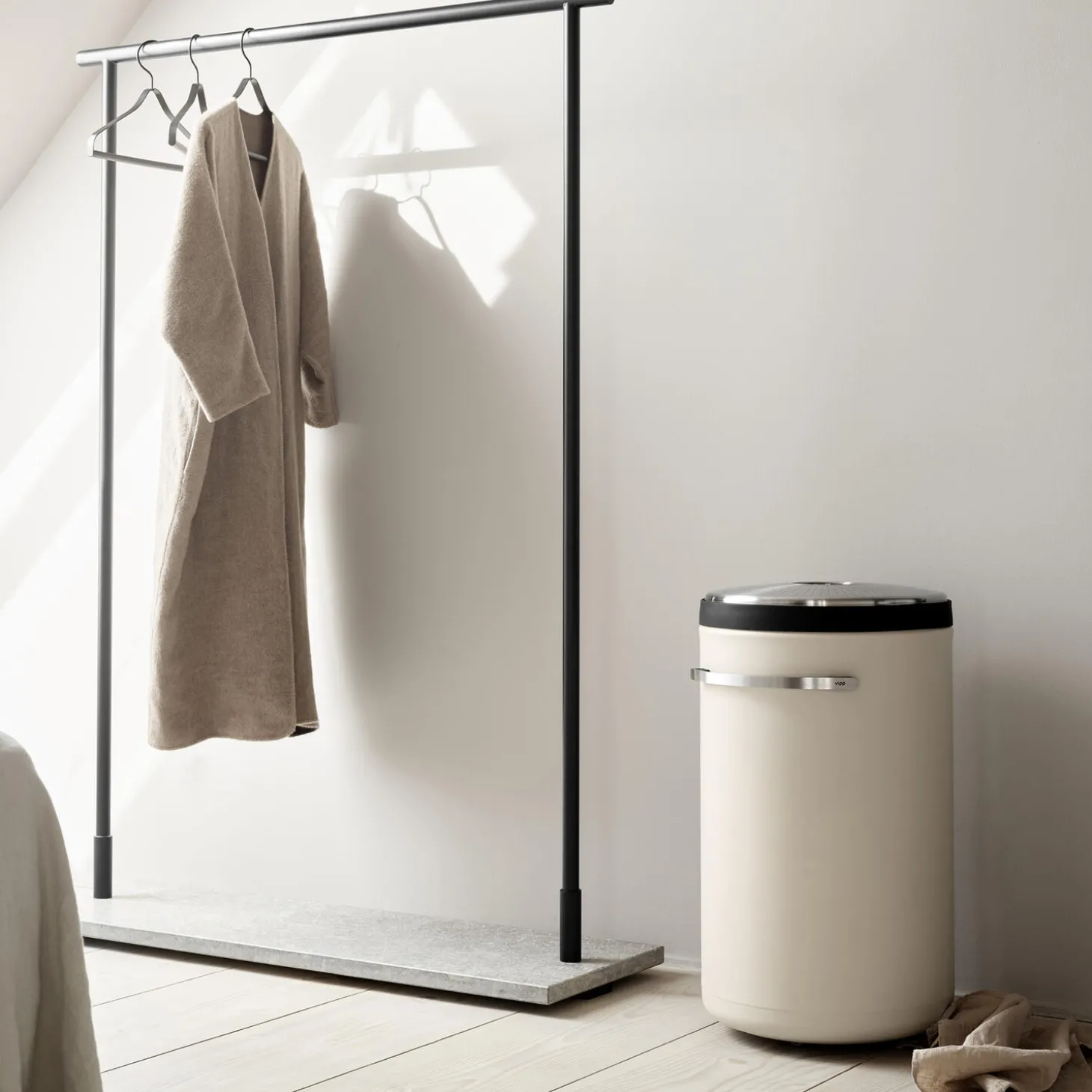 Vipp vasketøjskurven er en praktisk løsning på sortering af vasketøj i både badeværelse og soveværelse. Det perforerede låg sikrer luftcirkulation, og vasketøjskurven er udstyret med hjul. Inderposen, der kan vaskes i vaskemaskinen, er delt i to sektioner, så vasketøjet er let at sortere.